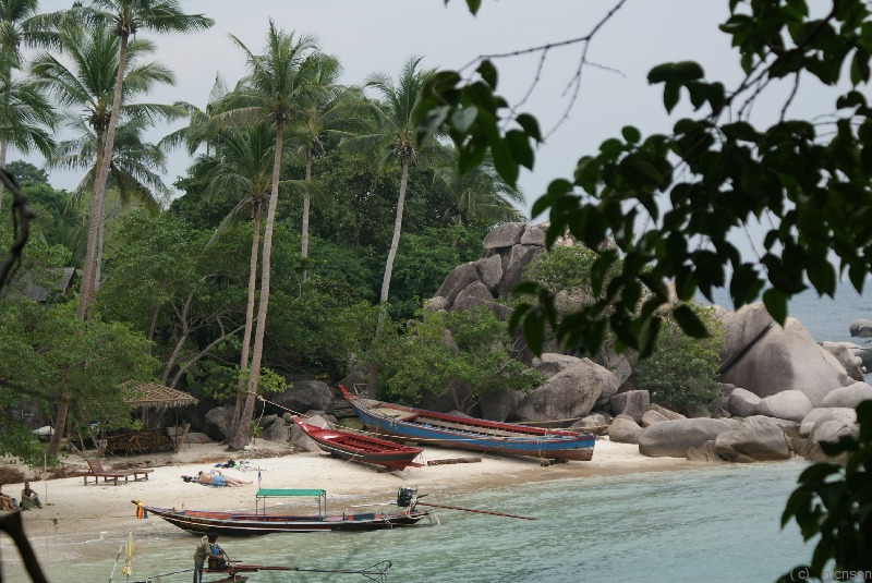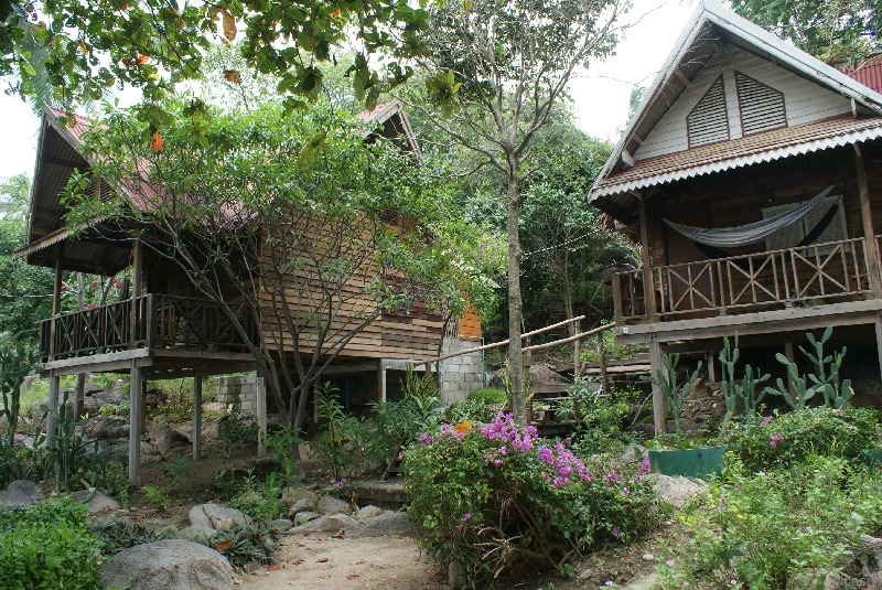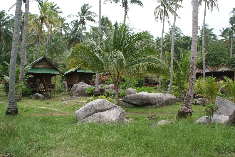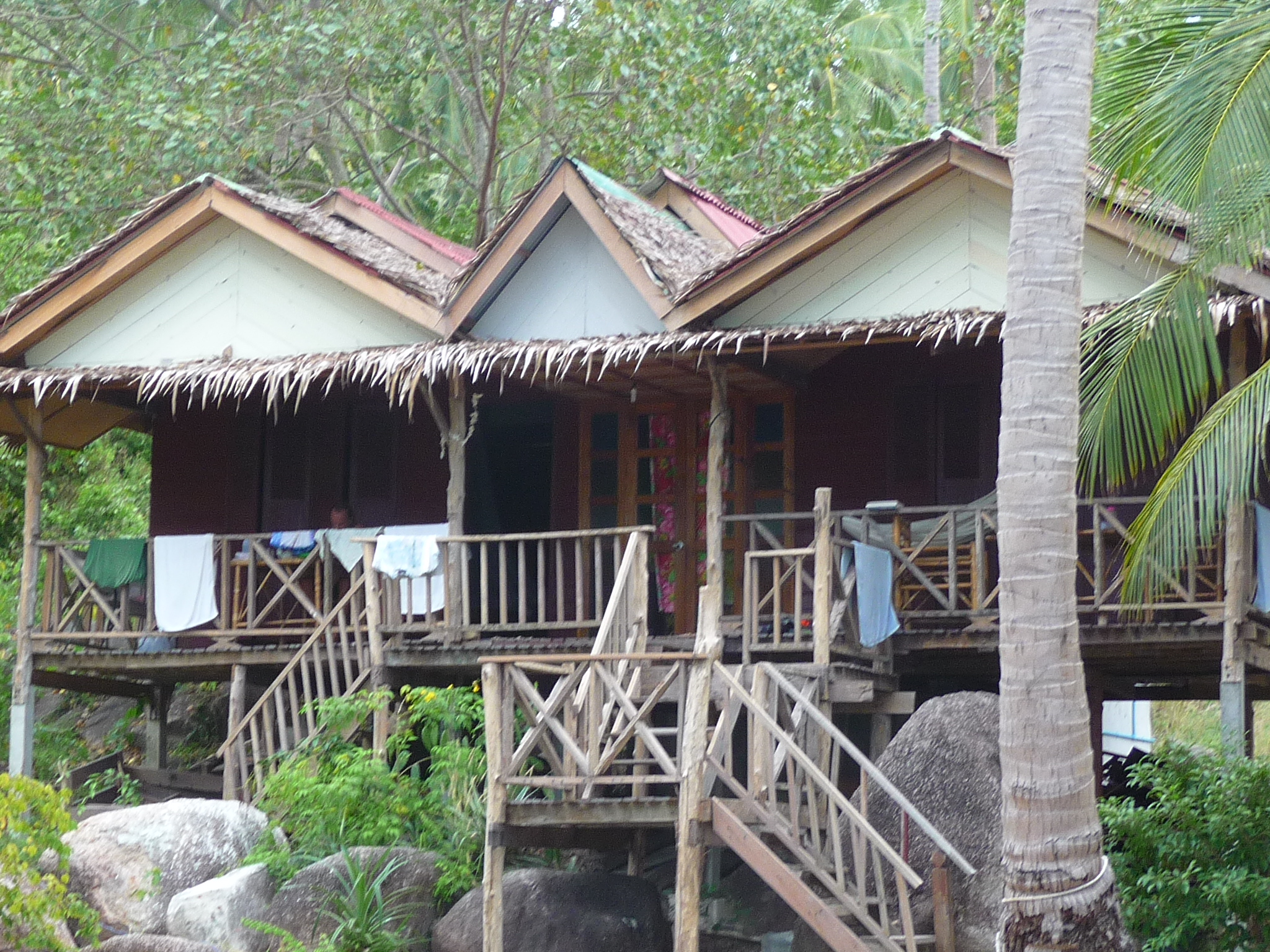 Das schönste Resort an dieser Bucht Ko Taos. Die Holzbungalows stehen zum Teil direkt am Strand, oder sind in den Hang gebaut. Auch hier sind alle mit Ventilator ausgestattet. In dem gemütlichen Restaurant sitzt man mit Meerblick. Die Auswahl auf der Speisekarte ist nicht so groß, wie manch einer gewohnt ist, dafür ist das Essen wirklich schmackhaft. Das finden wohl auch die diebischen Vögel, die spätestens nach Beenden der Mahlzeit am liebsten die Reste vom Teller picken.