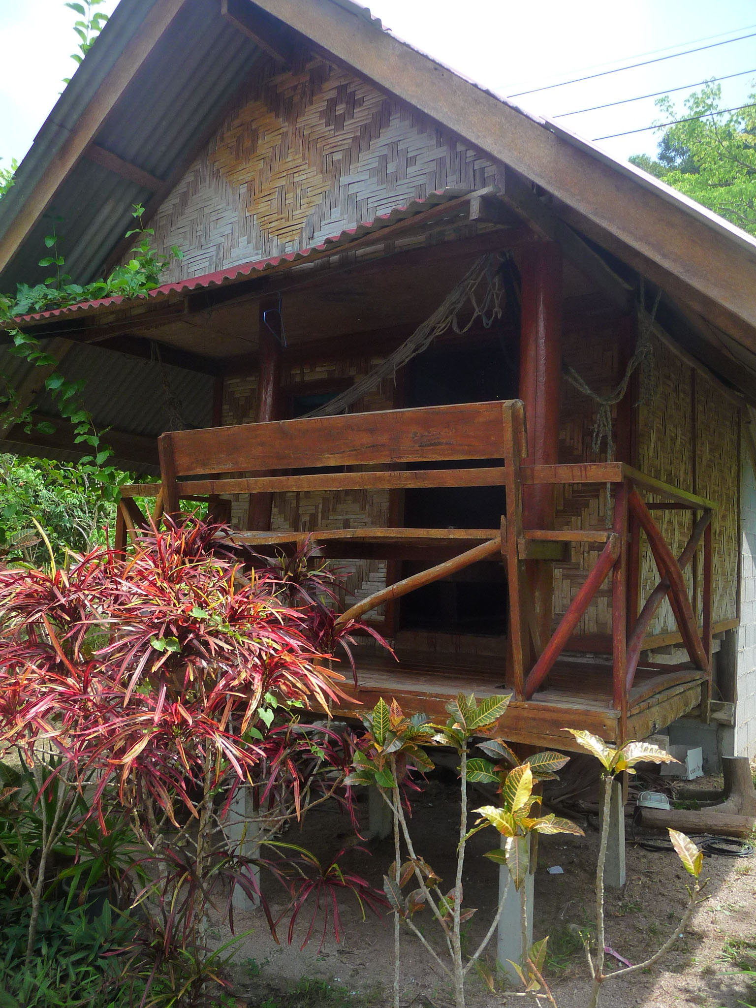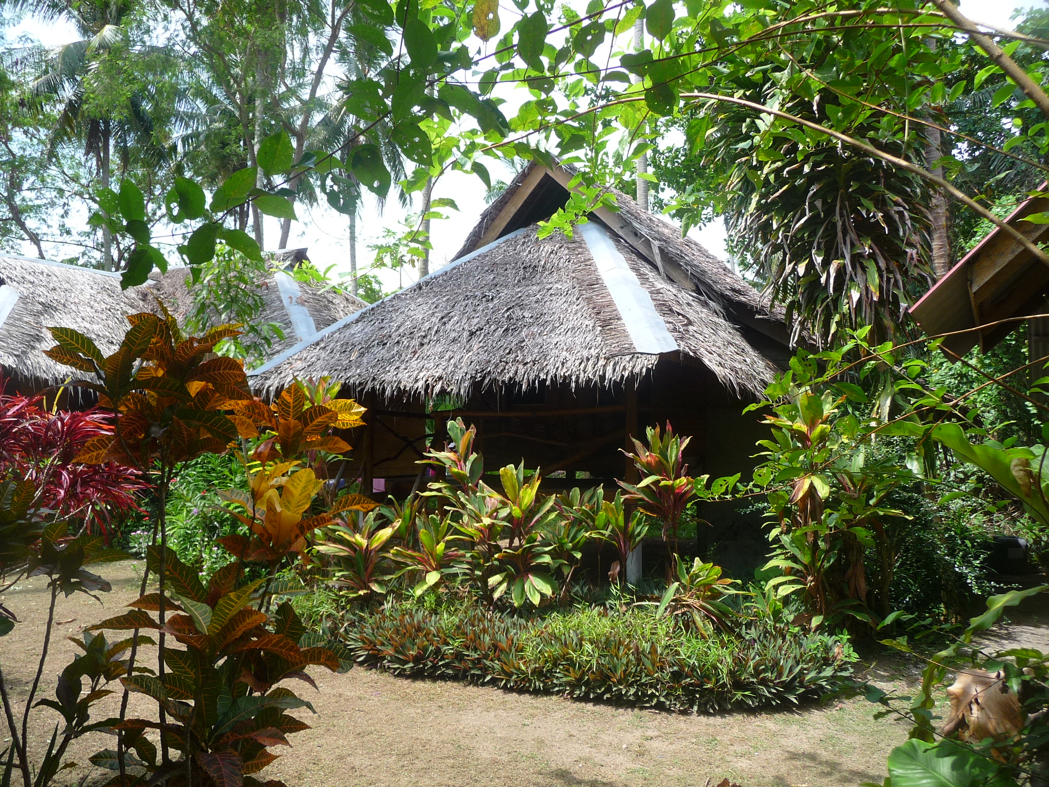Schöne familiäre Anlage. 6 Hütten aus Matte mit Ventilator stehen in einem Garten. Dazu gibt es ein kleines Restaurant.