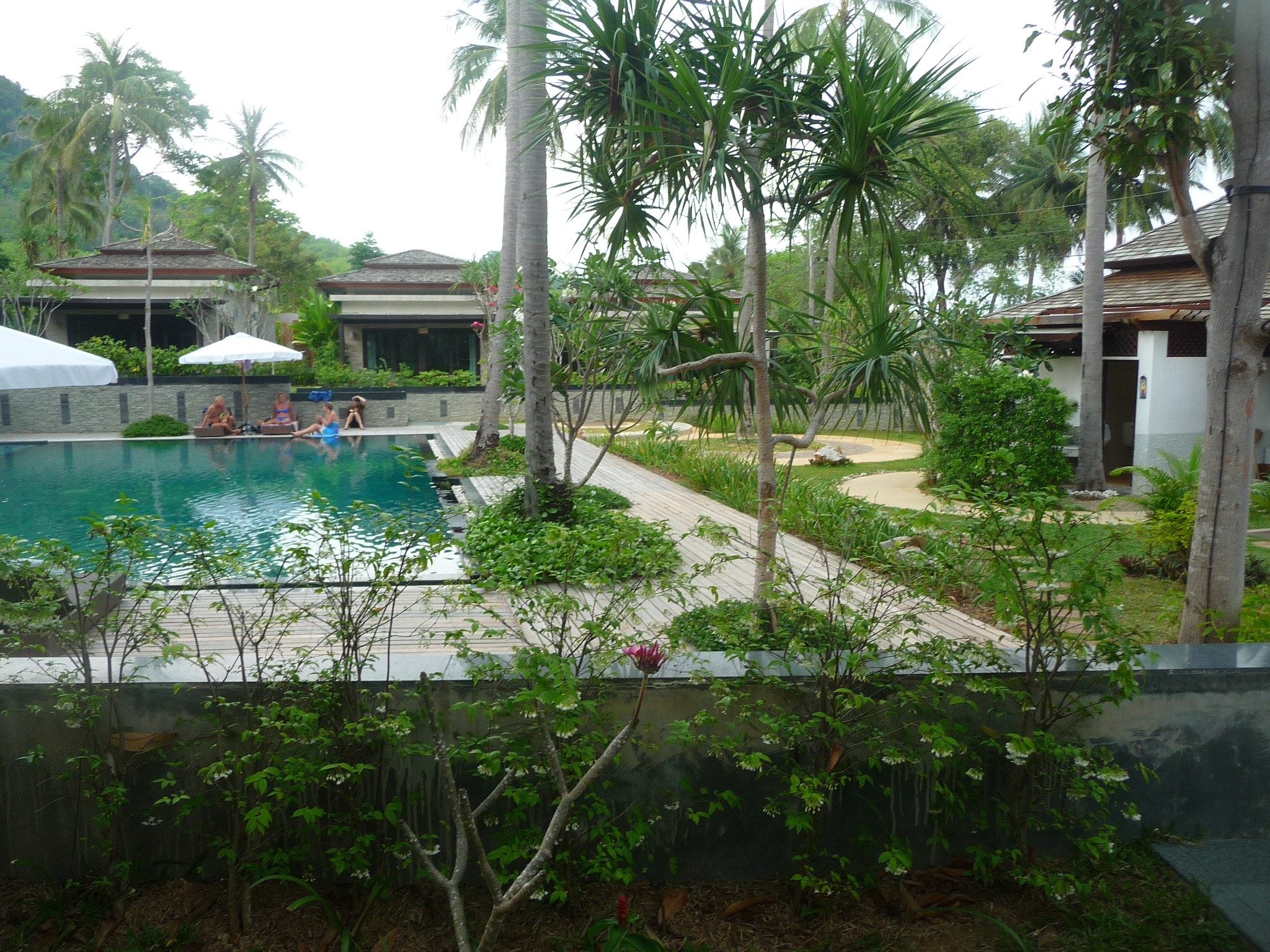 Etwas eng aufeinander gesetzte Häuser, die sehr geschmackvoll mit viel dunklem Holz gestaltet sind. Zum Teil haben die Villen auch einen kleinen Privatpool.