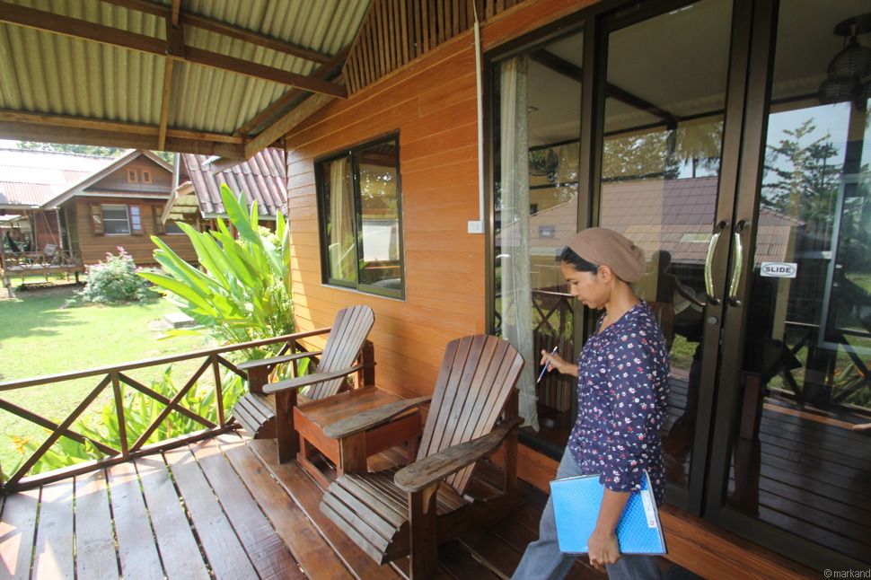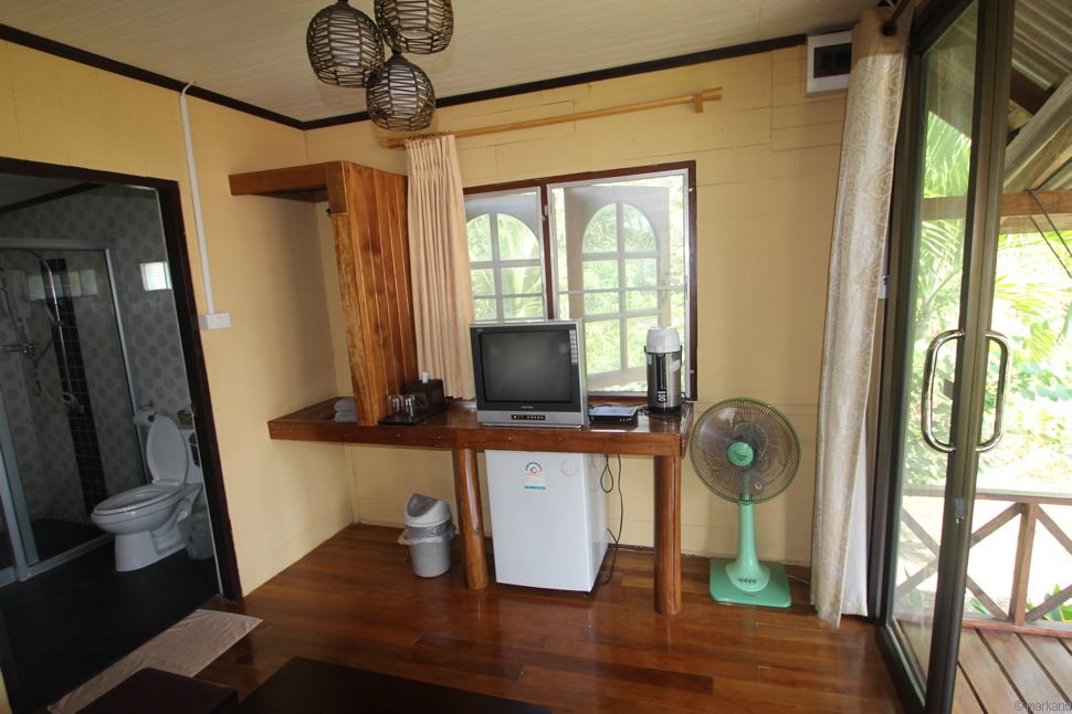 Wahlweise kann mit Ventilator oder Klimaanlage wohnen. Alle haben TV und Kühlschrank im Zimmer.