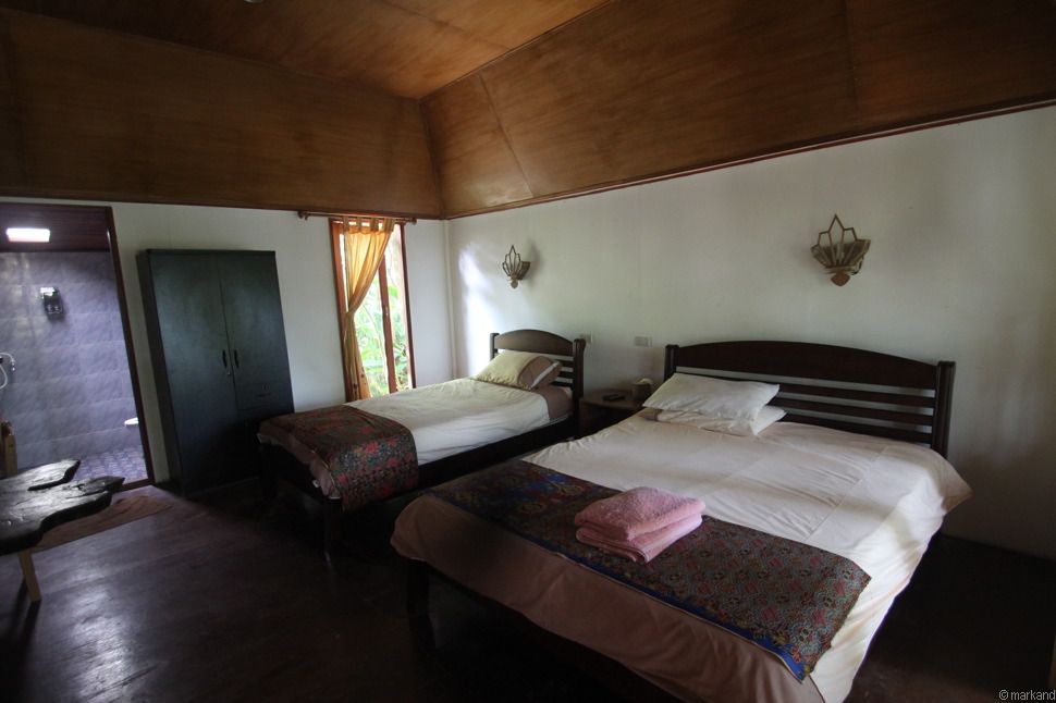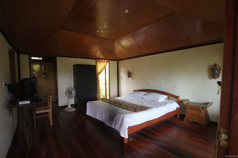 Das Resort bietet fünf goße Bungalows. meist Ventilator, einer mit AC. Die Ausstattung ist einfach, aber ansprechend (leider manchmal ohne Moskitonetz - Nachfragen, wenn keins vorhanden ist).