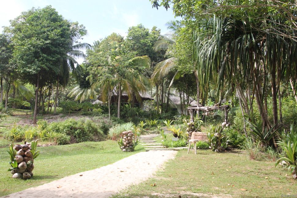 Sehr weitläufige Anlage mit vielen Bungalows im Wald und nahe am Strand. Geräumige gut ausgestattete Zimmer zu entsprechend hohen Preisen.