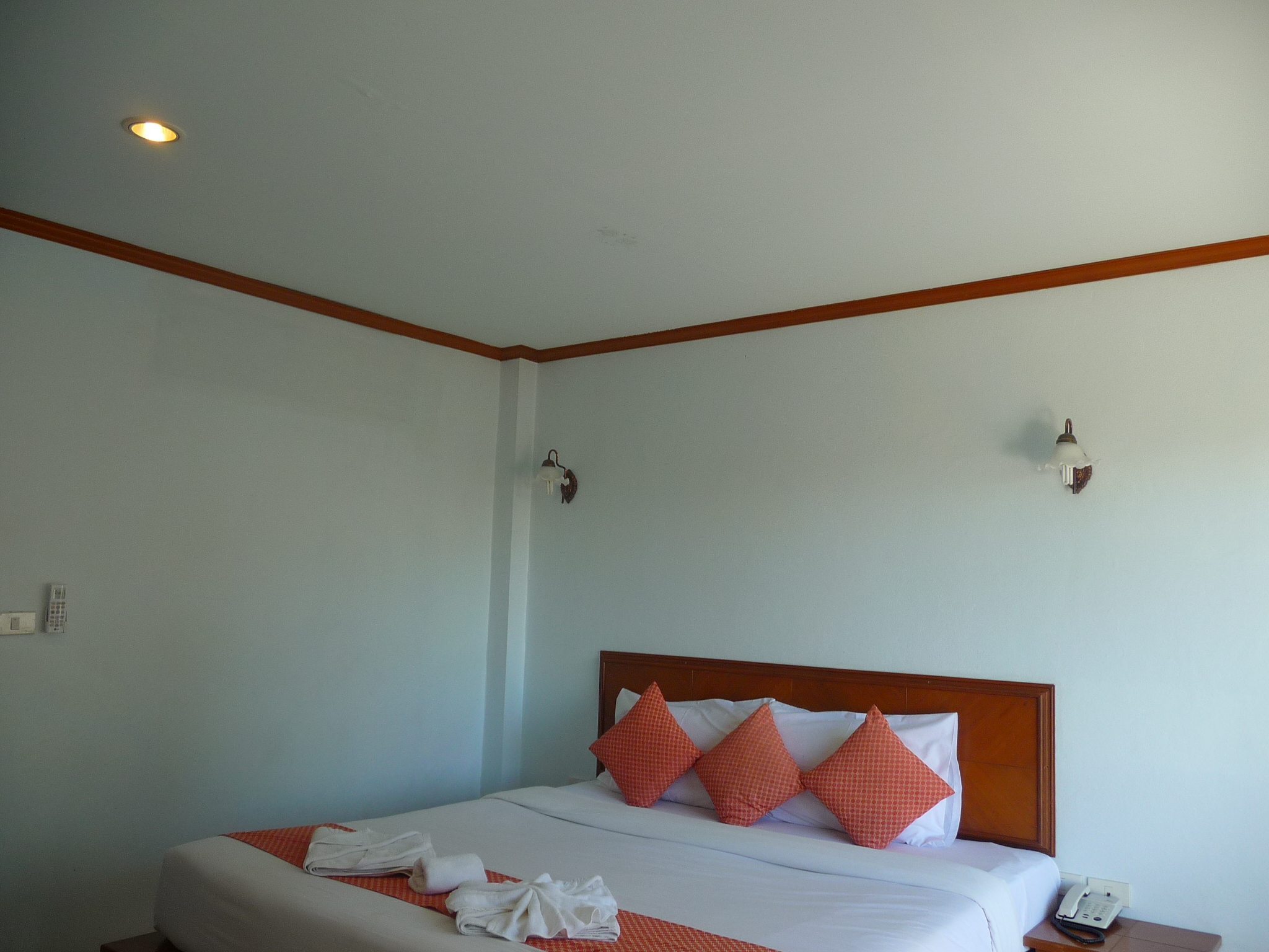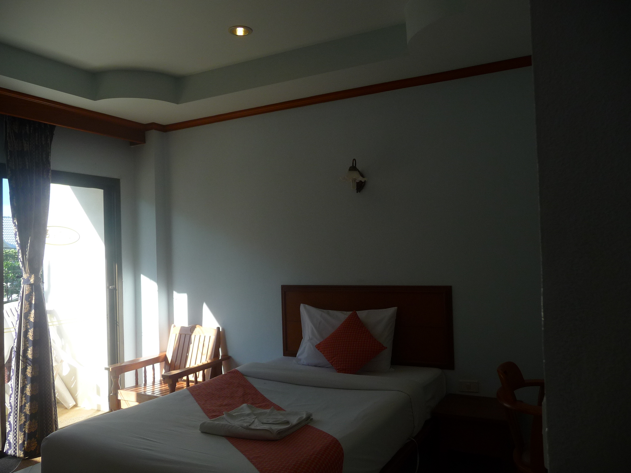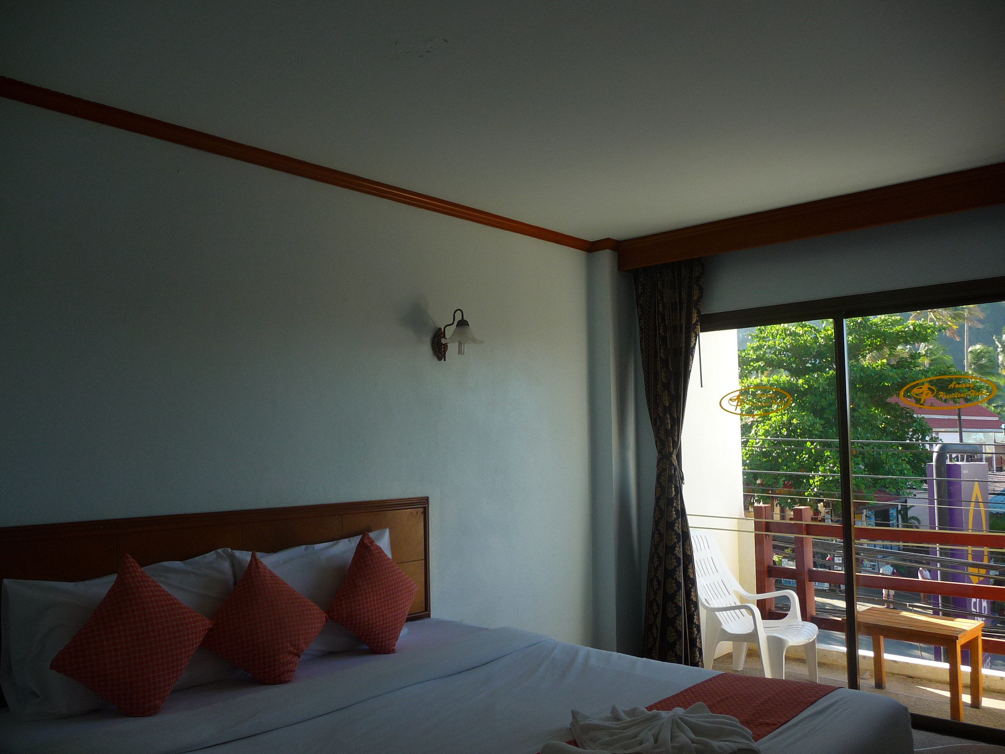 Zimmer mit Balkon und Blick auf die Straße oder das Karstmassiv im Hinterland.