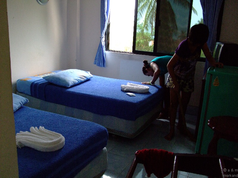 Für 500/800 BAht Zimmer mit Ventilator. Mit AC 1000 Baht.