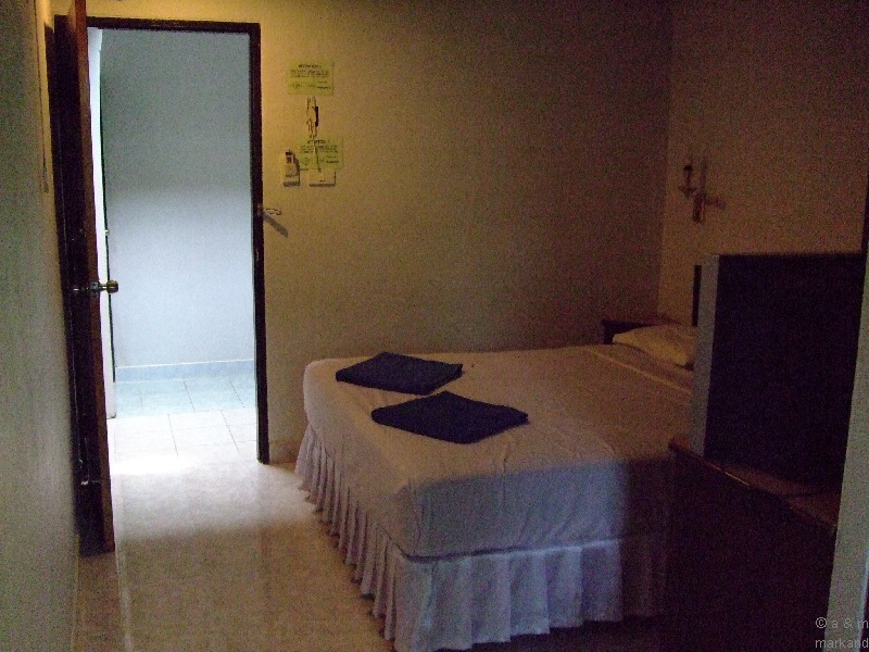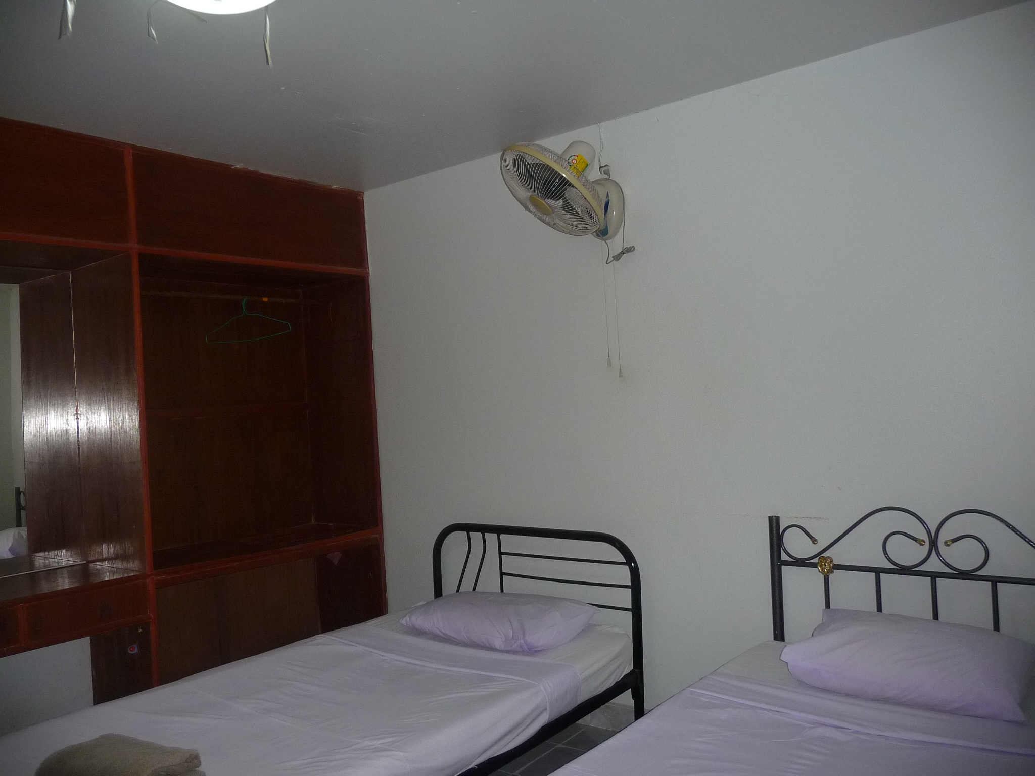 Recht günstige Zimmer mit AC oder Ventilator im Haupthaus. Die ganz günstigen Zimmer im Erdgeschoss haben einen Ventilator und kein Fenster.
