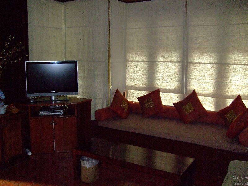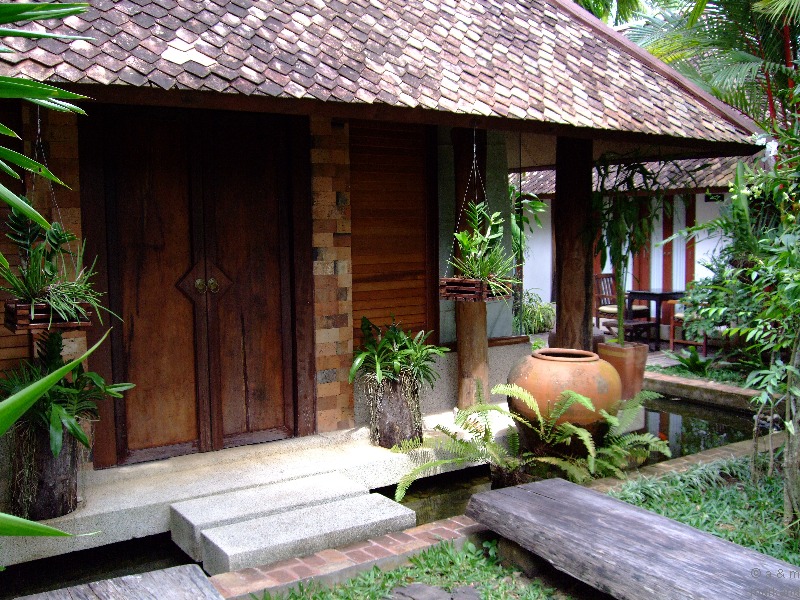 Bemerkenswert ist vor allem die Gartenanlage: Zahlreiche Wassergräben und unzählige Orchideen schmücken den schattigen Garten.