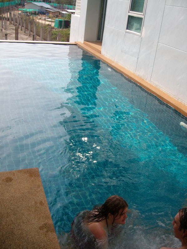 Sogar einen kleinen Pool haben die Architekten untergebracht; nichts zum Schwimmen, aber ok für eine Abkühlung.