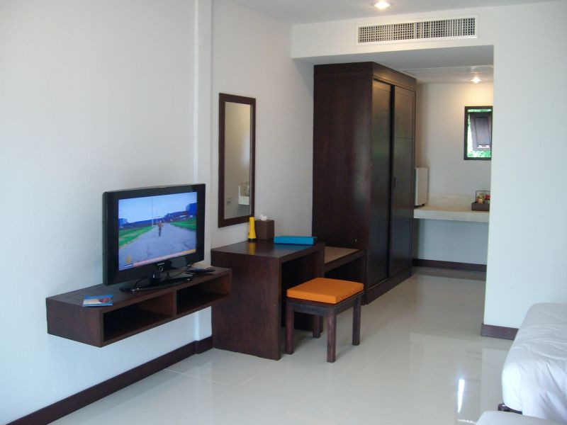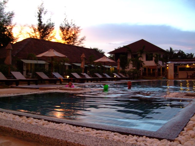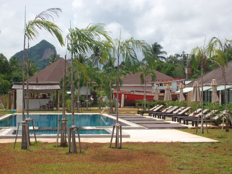 Kleines Resort mit Pool. Darum gruppieren sich Reihenhäuschen mit ansprechend großen Zimmern.