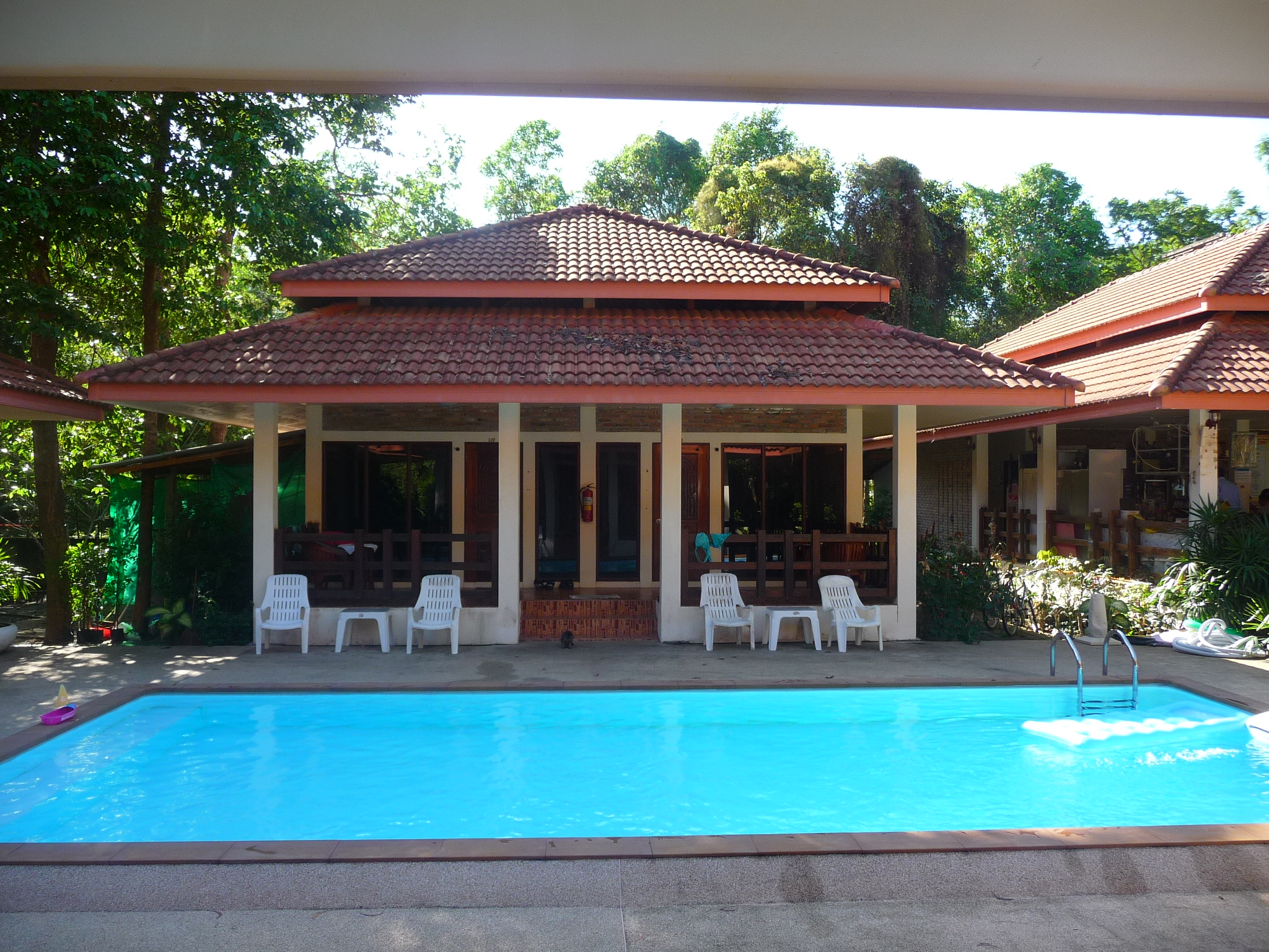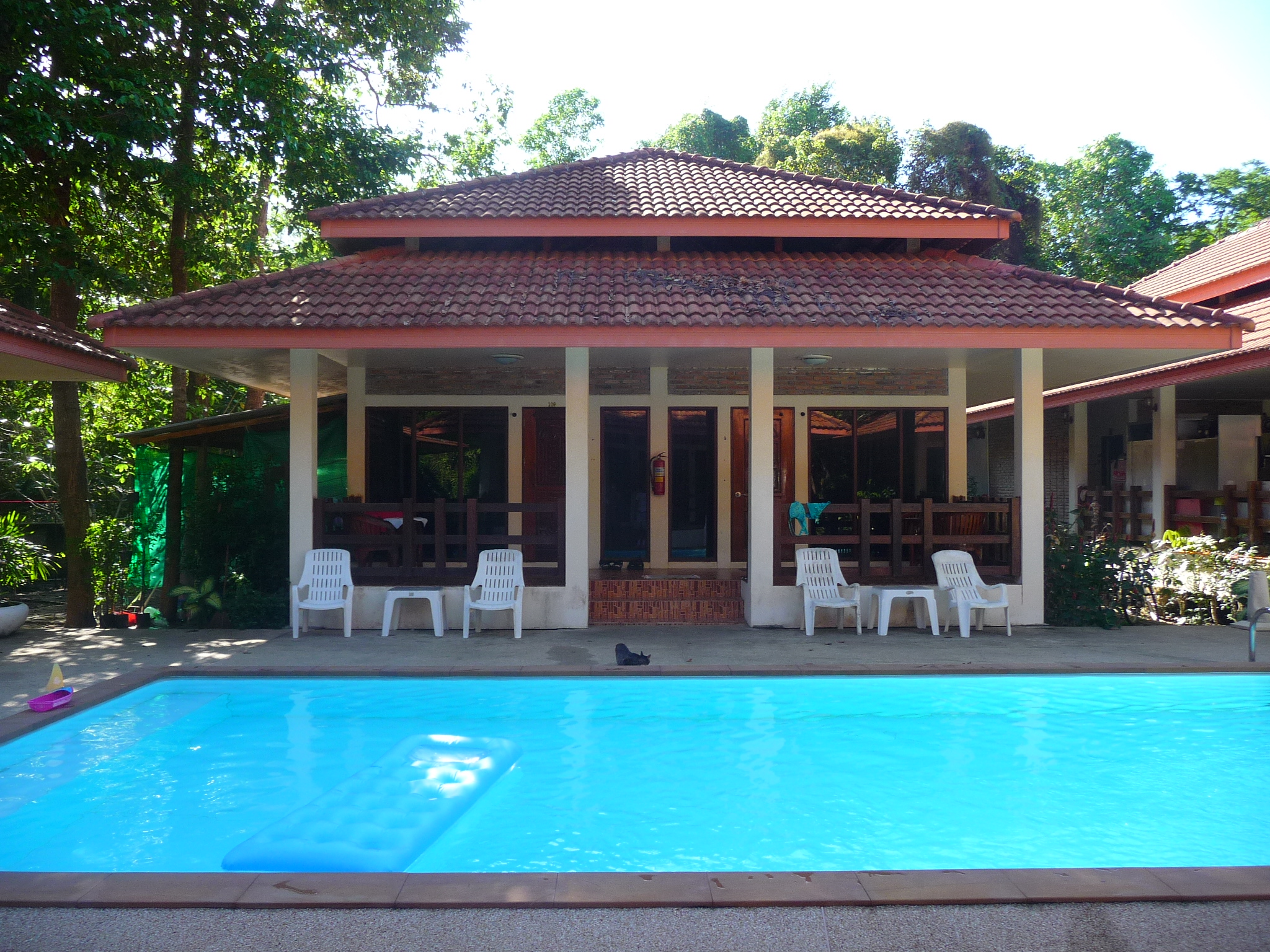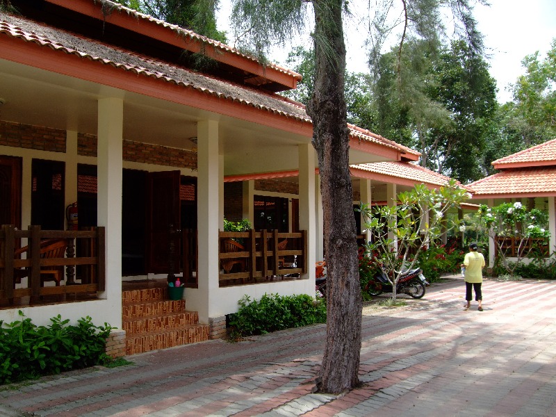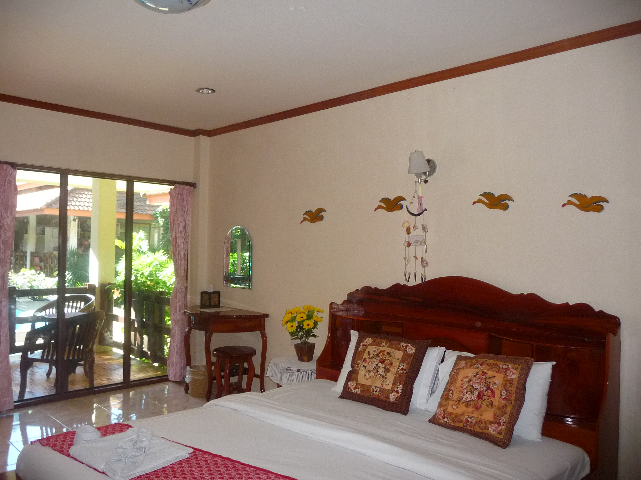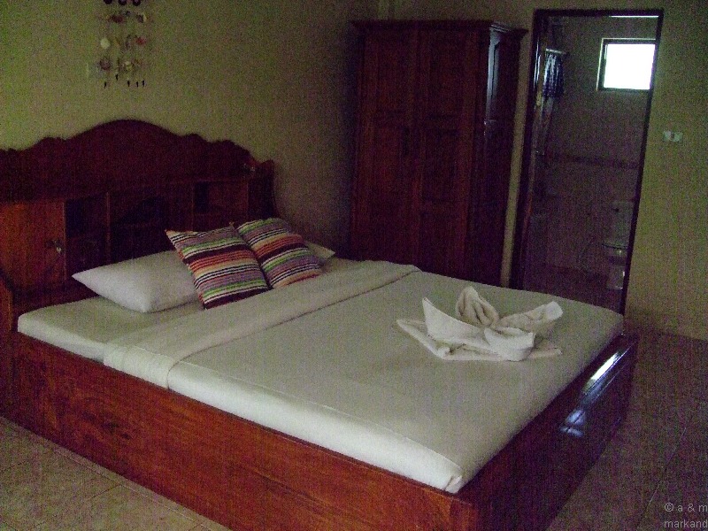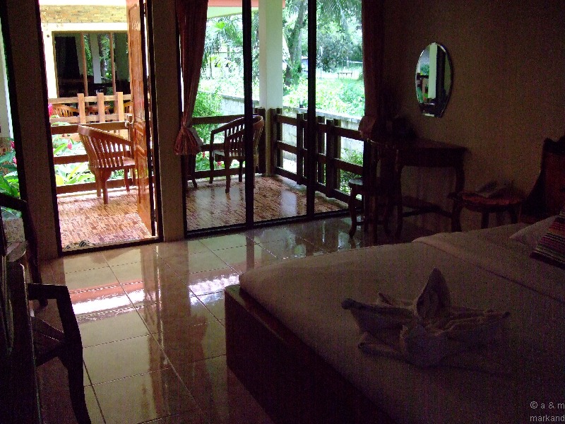 Die 10 Zimmer sind  rund um den Pool gruppiert. Große Fenster Richtung Poolbereich und Veranda geben dem Zimmer Licht. Die Einrichtung ist rustikal.
