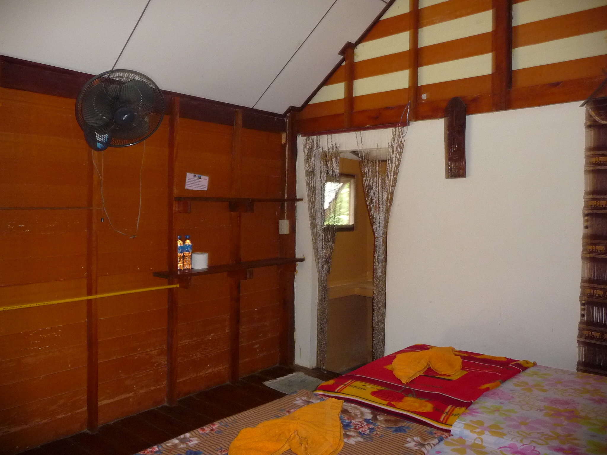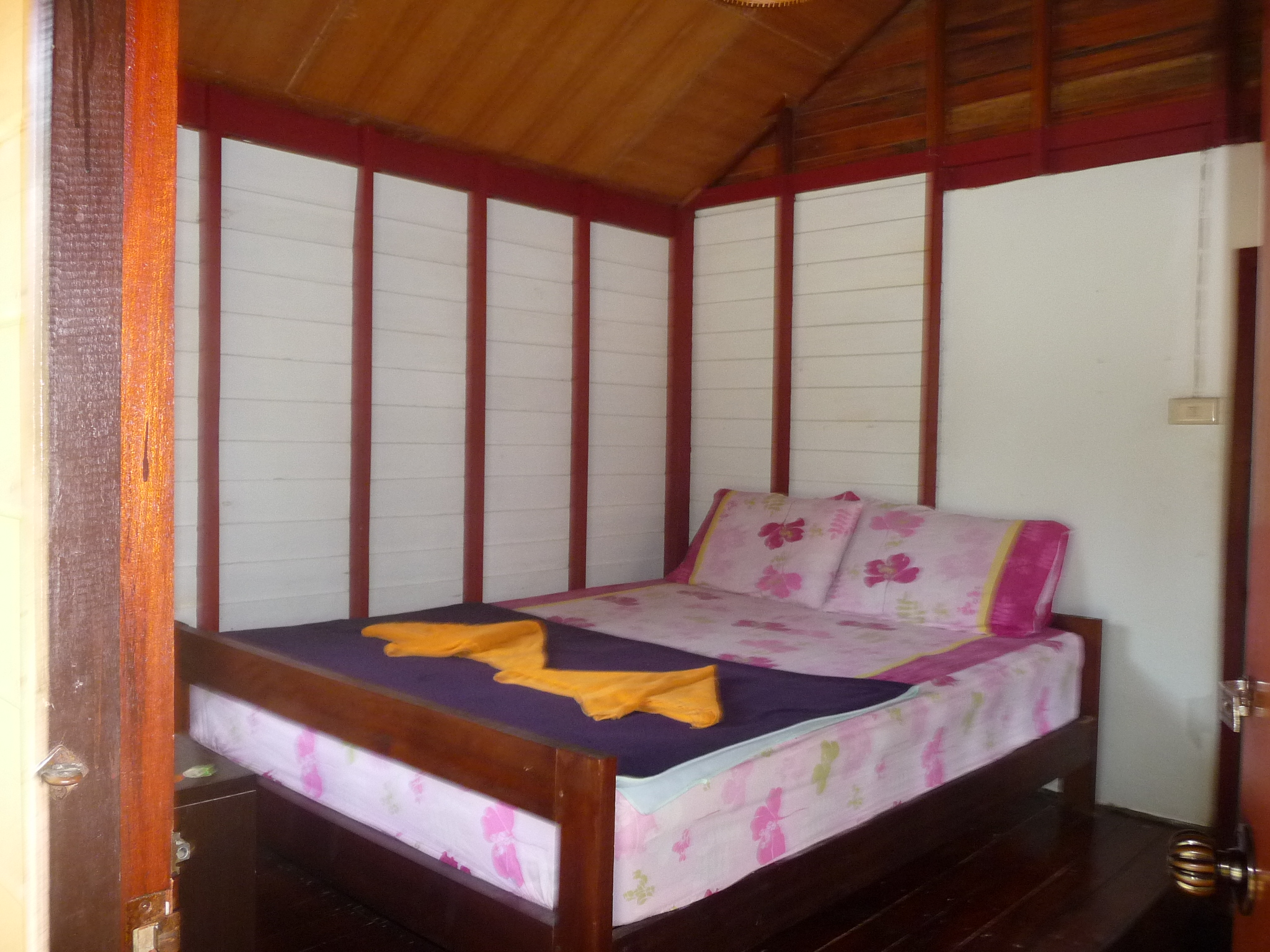 Die Zimmer sind sauber, aber oft doch schon verwohnt. Gäste, die wir trafen, waren irritiert, dass das Wasser im Bad einfach unten aus dem Waschbecken hinausplätscherte und man da schon mal nasse Füße bekommen kann. Wer hier einzieht, zahlt schon mal 1000 Baht und hat dann nur eine einfache Hütte mit dünner Matratze, nur Ventilator (und nur Strom von 18 bis 6 Uhr morgens) ... nicht für jeden eine gute Wahl. Aber für einige gerade wegen der Lage und Einfachheit beliebt. Wir raten: guckt es euch an und entscheidet spontan, ob es etwas für euch ist.