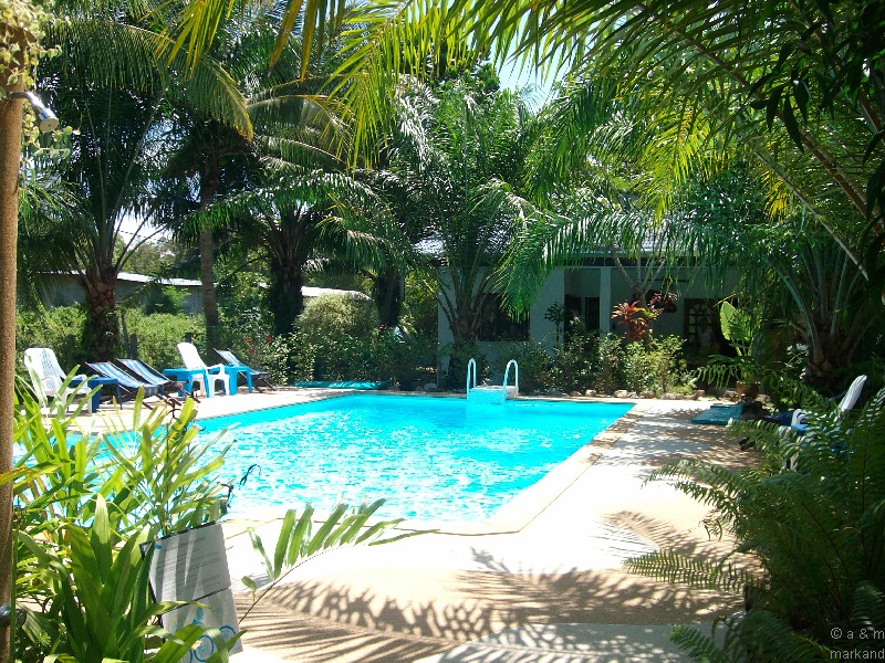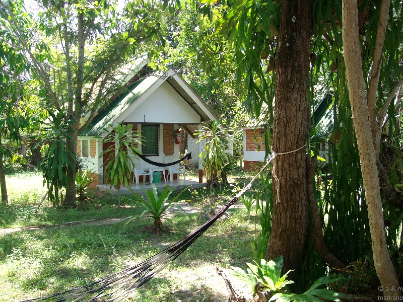 Bungalows mit Ventilator 1300 Baht, mit AC 1600 Baht. Familienbungalows kosten 3000 Baht.