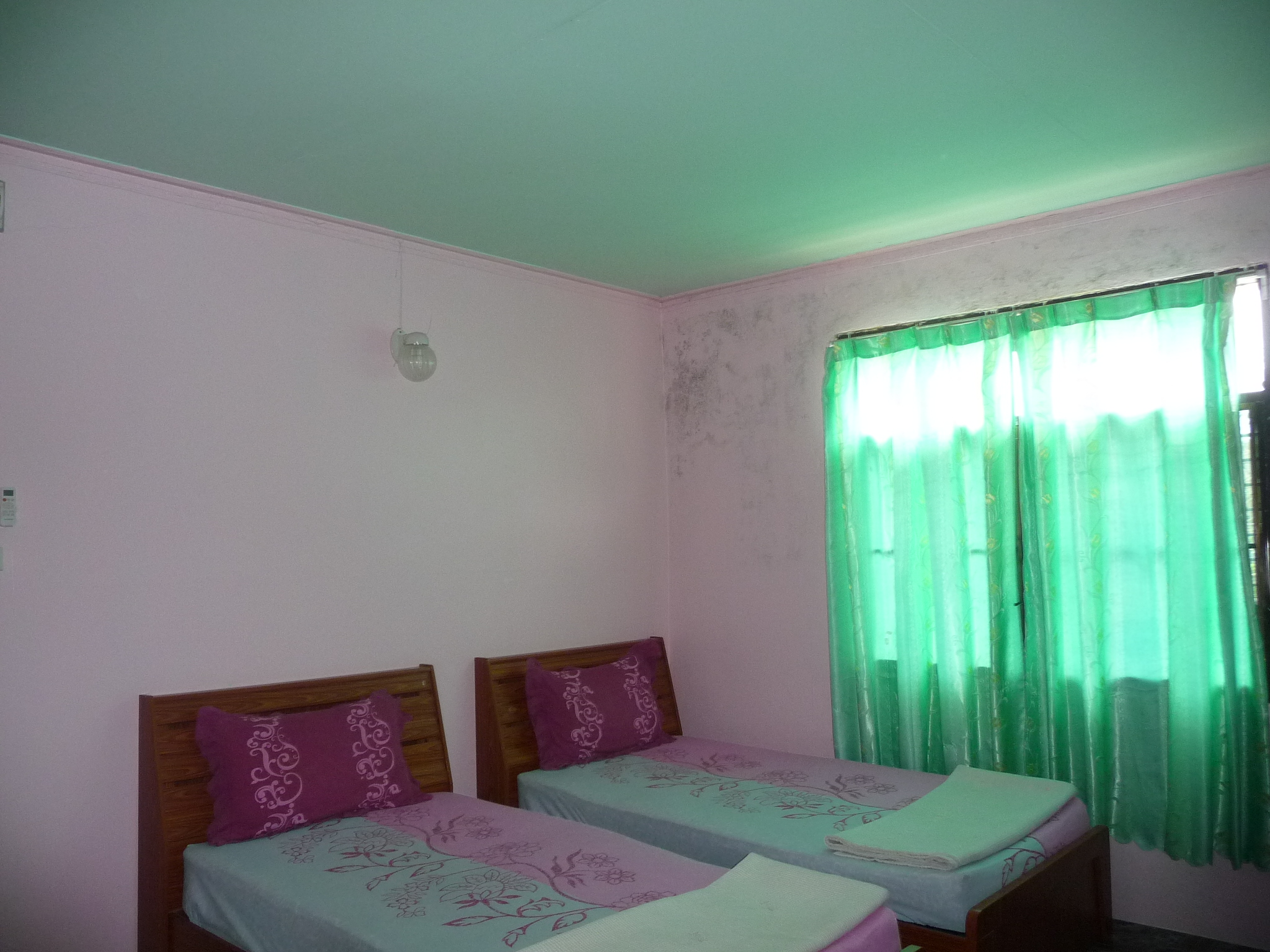 Die Zimmer in diesem Haus sind einfach, aber recht groß und wahlweise mit Ventilator oder AC ausgestattet.