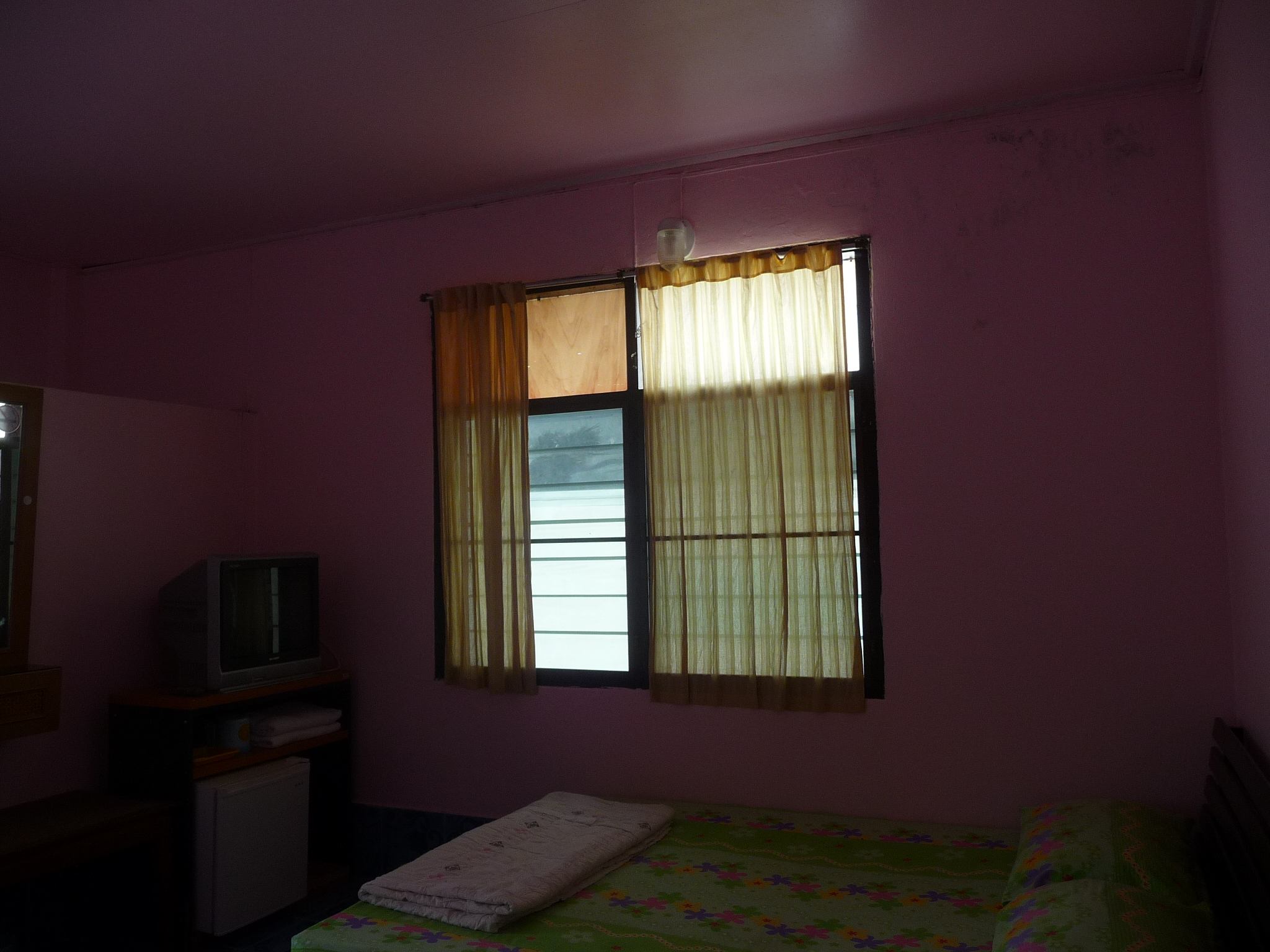 Zimmer mit Vetlator 280/350 Baht, AC 500/600 Baht.