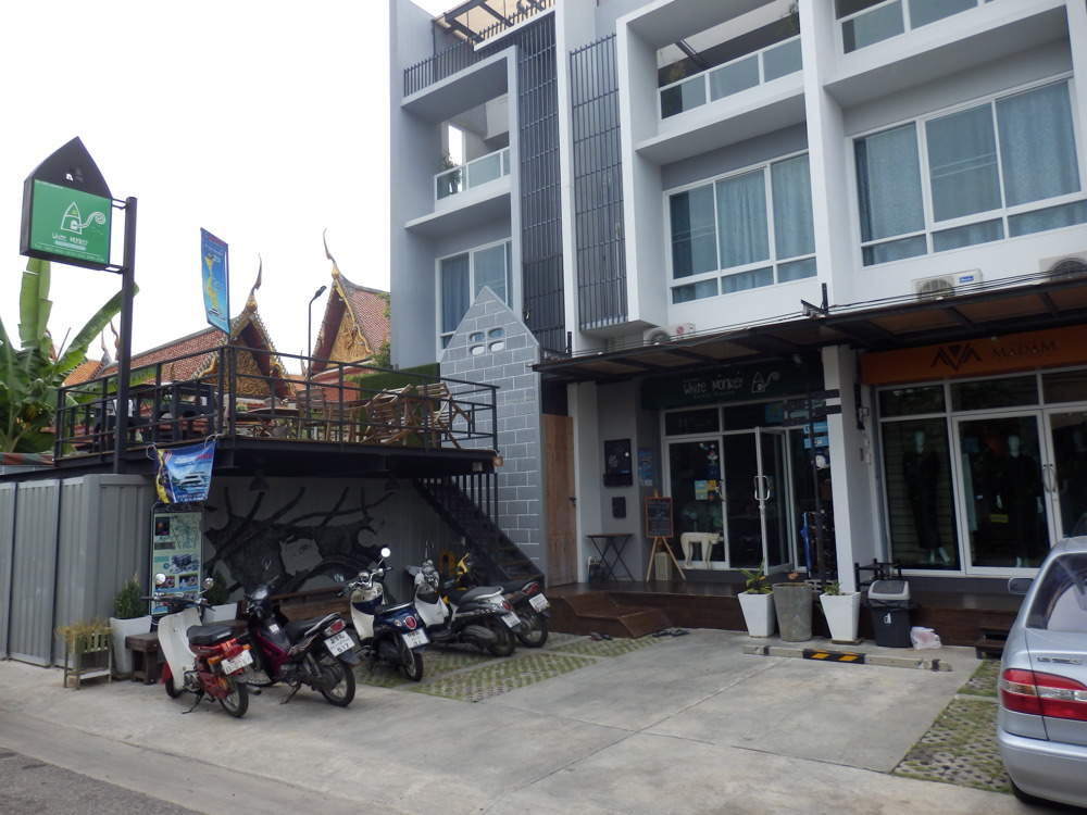 In der gleichen Straße Richtung Süden auf der rechten Seite liegt das neue White Monkey Gästehaus. Wir sind gefühlt die ersten Gäste.