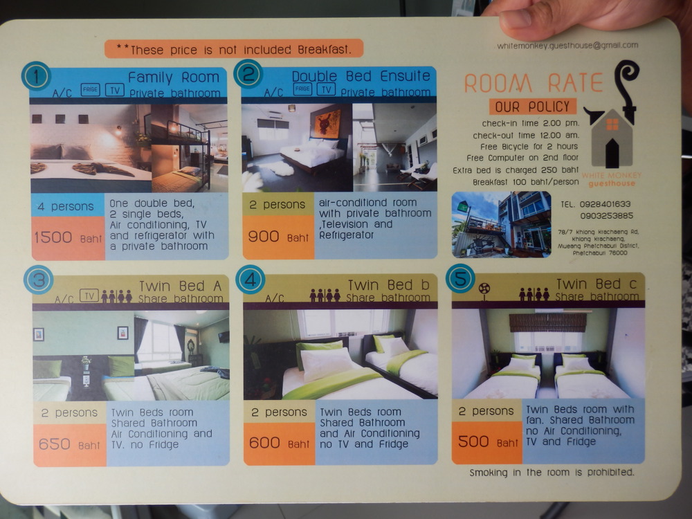 Die Zimmerpreise liegen bei 500 bis 1500 Baht (siehe Foto).