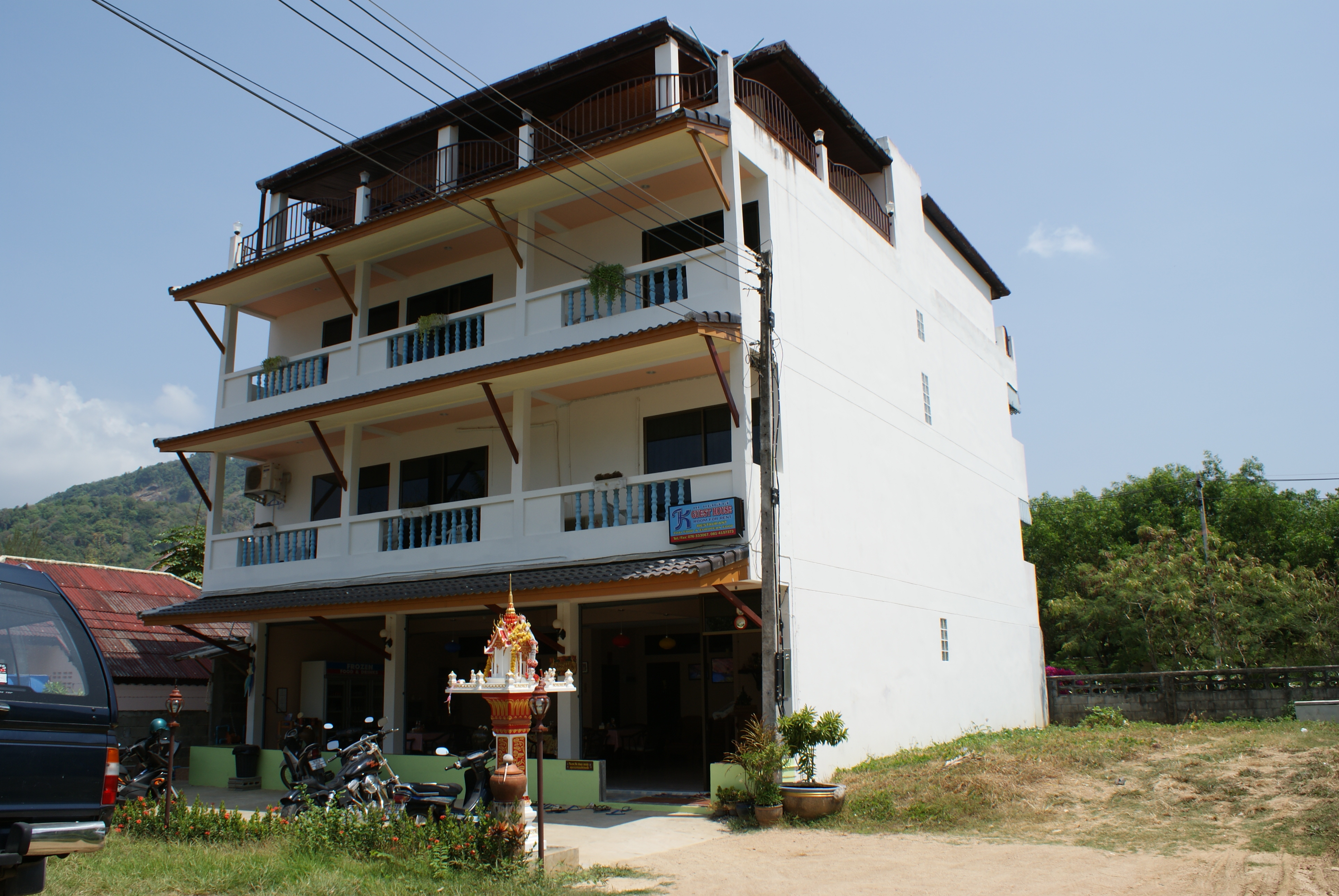 Von der Straße zurückversetztes Haus, einfache Zimmer mit AC oder Ventilator,  manche mit Balkon. 450Baht kostet ein Zimmer mit Ventilator in der High-season.
