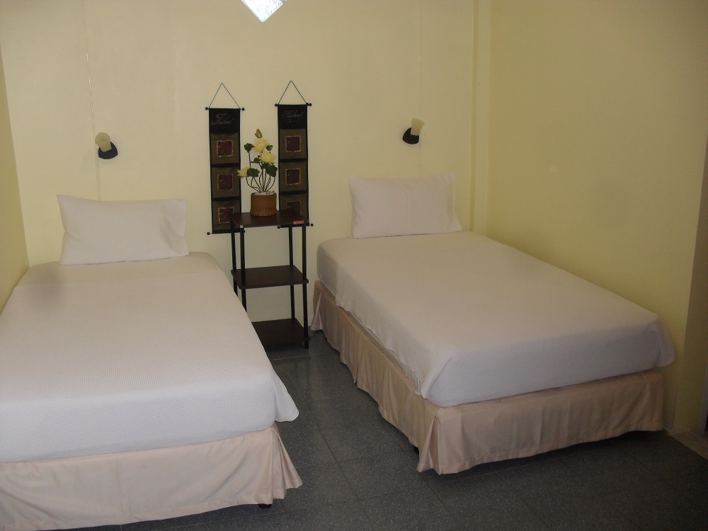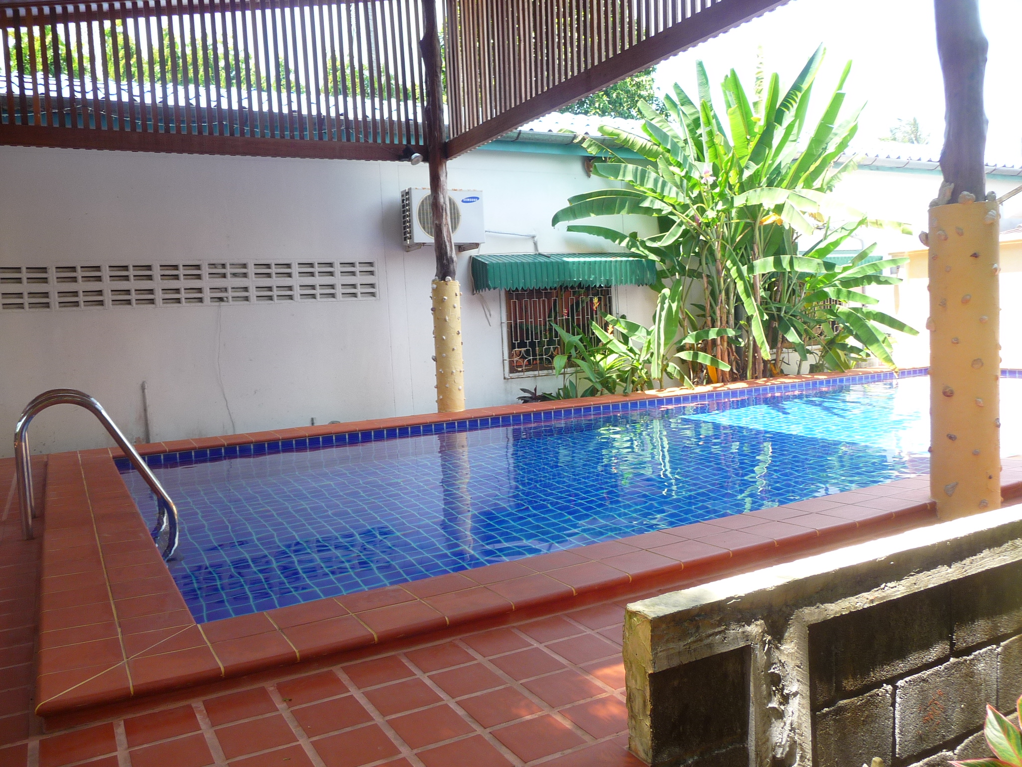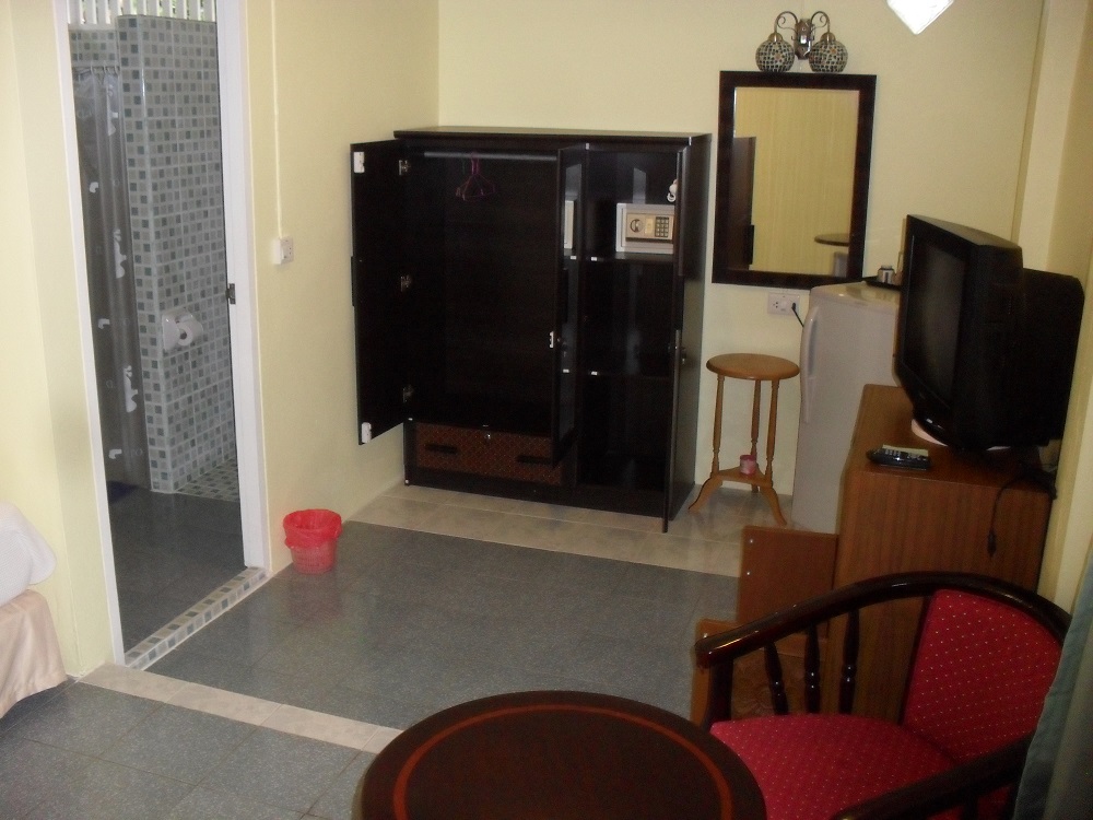 Mrs. Janchai Srisanga vermietet großzügige AC-Zimmer im schönen Garten hinter dem Minimarkt.