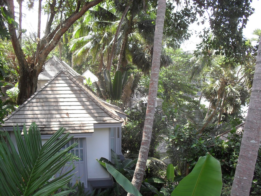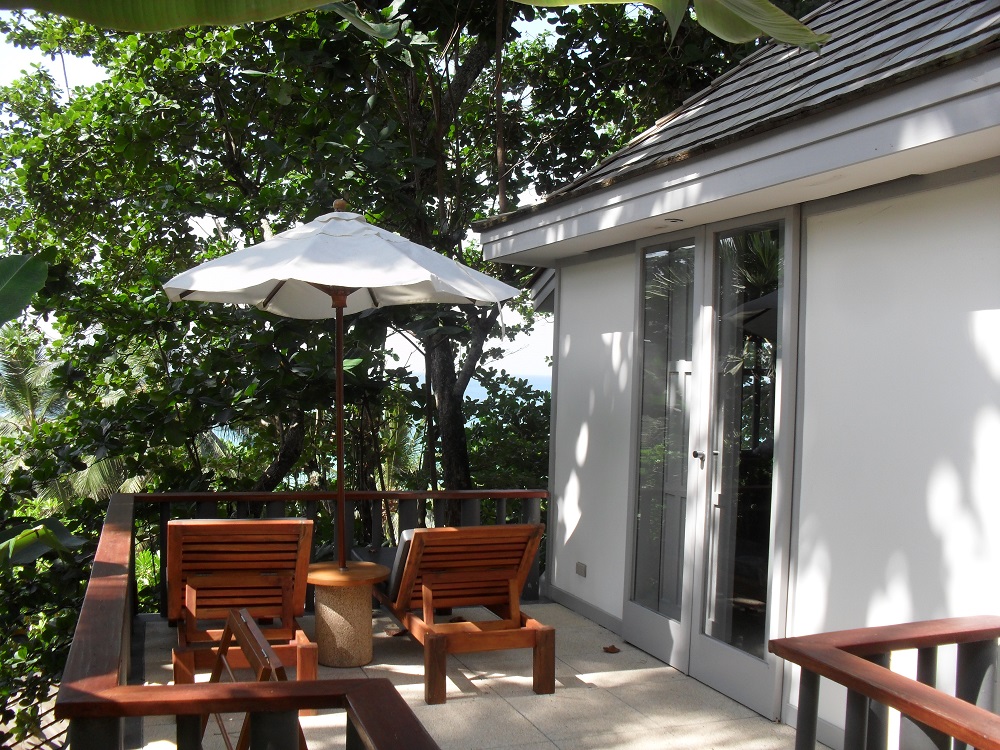 Die geräumigen Stein-Bungalows reihen sich am Hang entlang und haben alle Meerblick.