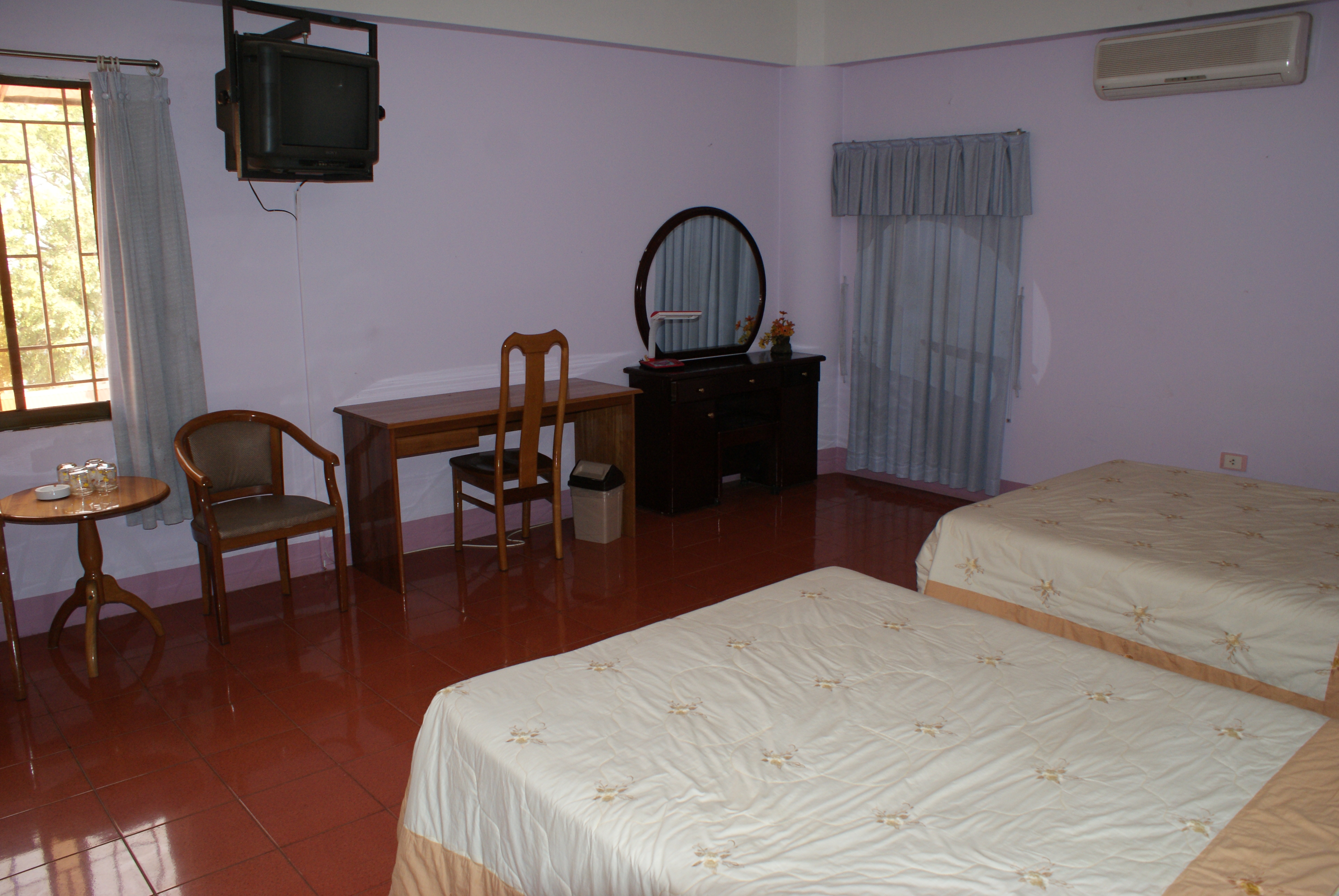 Großräumige, saubere Zimmer mit Fliesenböden. Im Zimmerpreis ist Frühstück inkludiert.