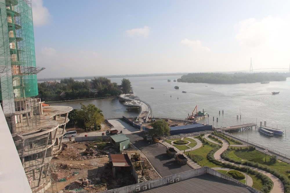 Dort am Flussufer stand es mal, das alte Ninh Kieu-Hotel ... Rechts am Rand des Bildes erkennt man den Neubau, der wohl Maßstäbe in der Hotellerie von Can Tho setzen wird – ganz wie es das alte Hotel vor vielen Jahren getan hat.