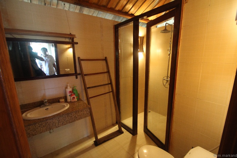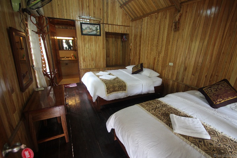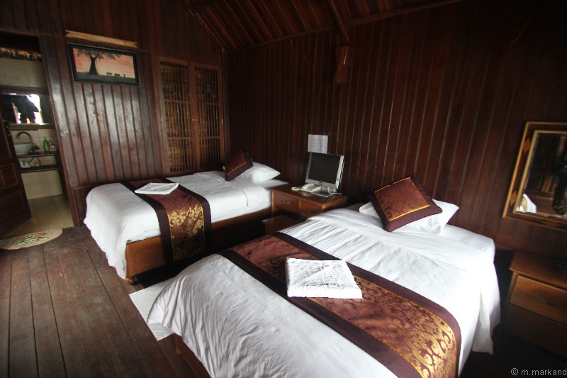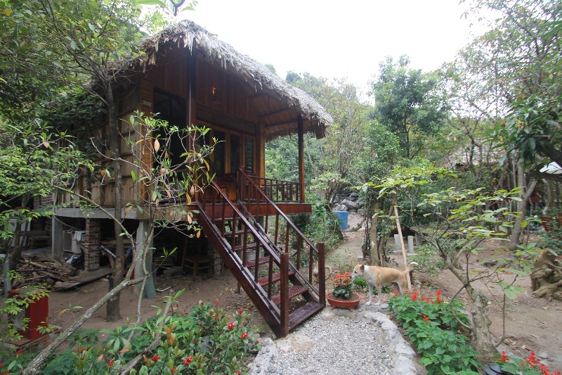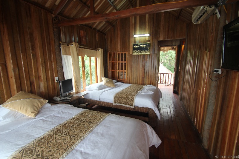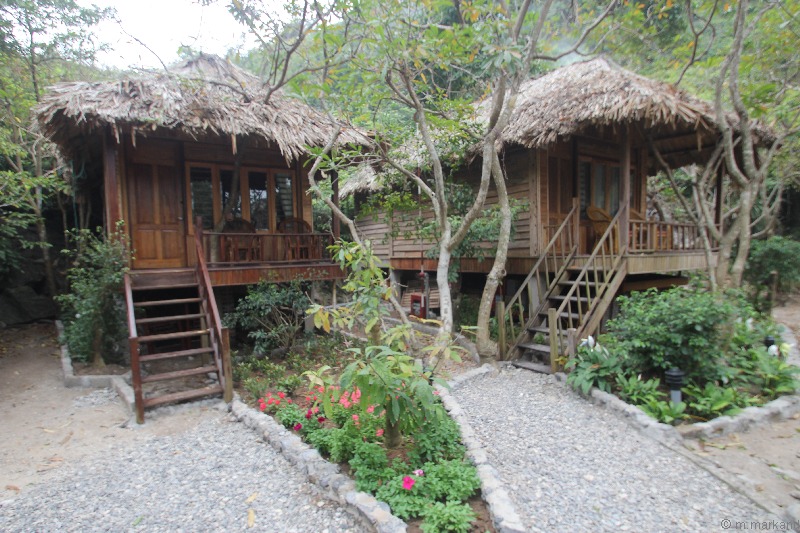 Die kleinen Hütten für den schmalsten Geldbeutel sind nicht besonders einladend – vor allem weil sie keine Sicht aufs Meer bieten, sondern auf vorgestellte Bungalows blicken (es ist aber durchaus ok, hier ein Nacht zu verbringen). Die etwas bessere Variante ist ebenfalls recht einfach, aber robust und mit Balkon ausgestattet (Blick in den Gartenbereich).