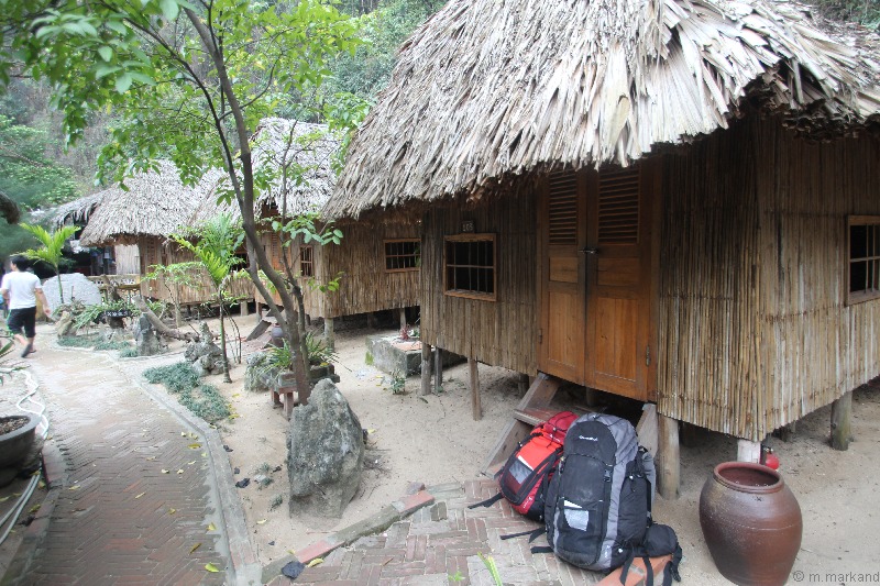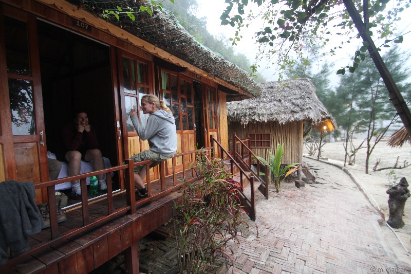Die besseren Häuschen bieten etwas mehr Platz und richtige Betten. Sehr schön sind die großen Häuser auf Stelzen mit riesigen Balkonen und Blick aufs Meer.