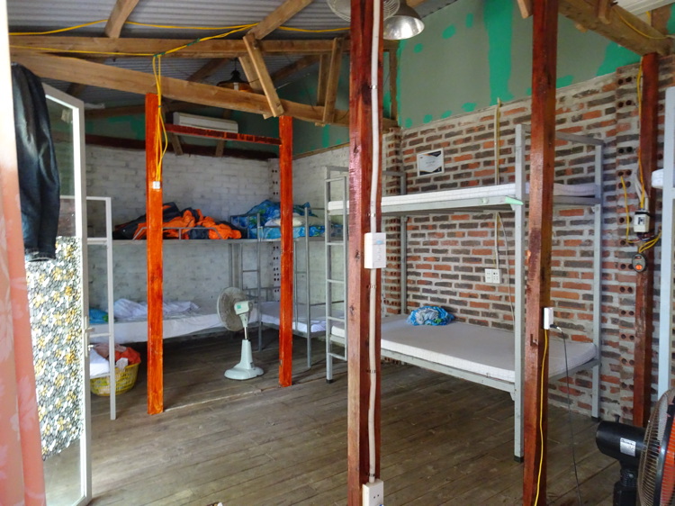 Einfacher 8-Bett-Dorm und einfache  DZ-Bungalows.