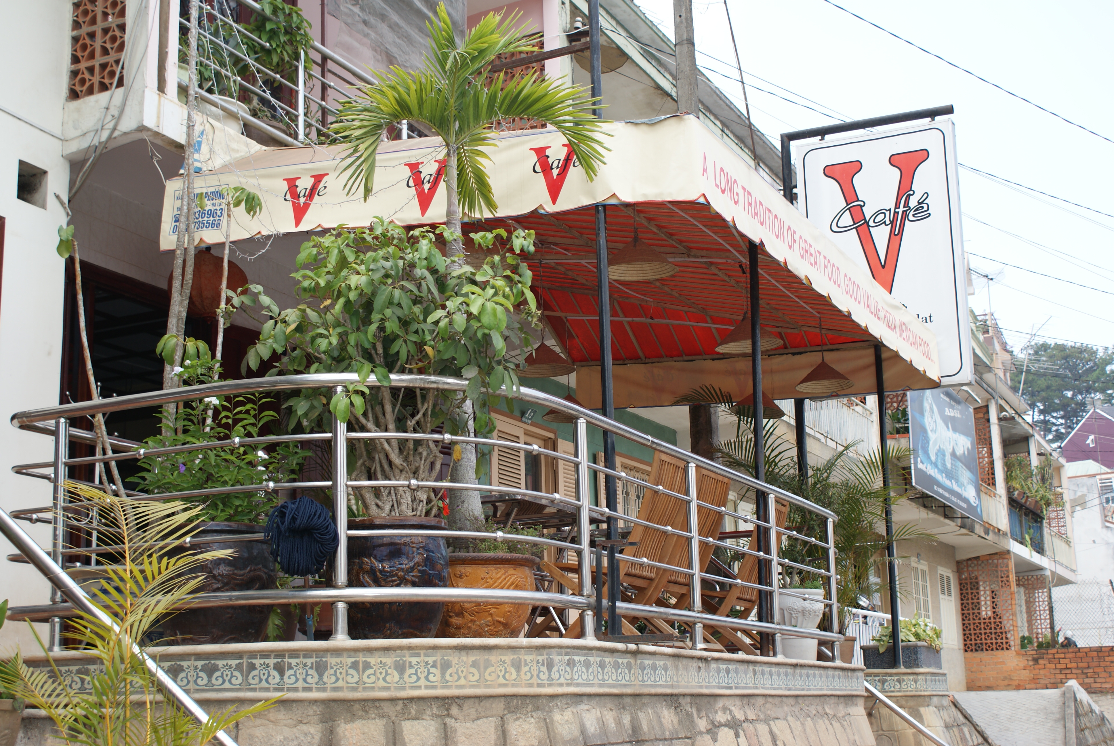 Asiatisches und Westliches kredenzt das nette Cafe mit Tischen an der Straße.