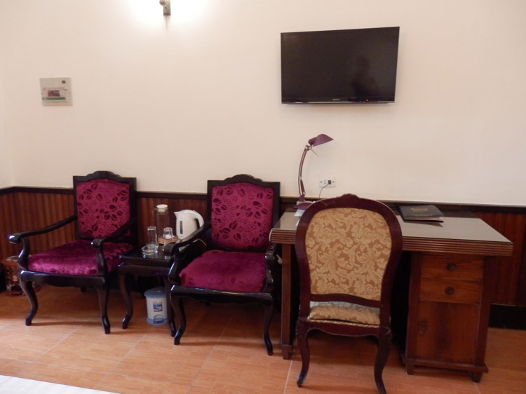 In diesem alten Kolonialhaus, erbaut Ende des 19. Jahrhunderts, scheint die Zeit stehen geblieben zu sein. Boutiquechick sucht man hier vergebens. Doch die Einrichtung ist gepflegt und der neuen Zeit wird zumindest mit einem modernen Flachbildschirm Rechnung getragen.