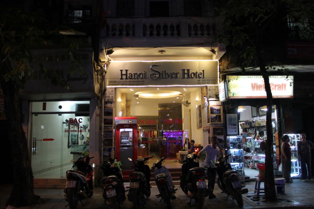 "Hanoi Silver Hotel" steht noch in großen Lettern über dem Eingang - und in unserem Buch (3. Aufl. S. 219): Doch tempus fugit - in Ha Noi besonders schnell - und nachdem das Haus zwischenzeitlich als "Hanoi Royal Hotel 3" firmiert hat, heißt es nach abermaligem Besitzerwechsel nun "Silver Legend Hanoi Hotel".