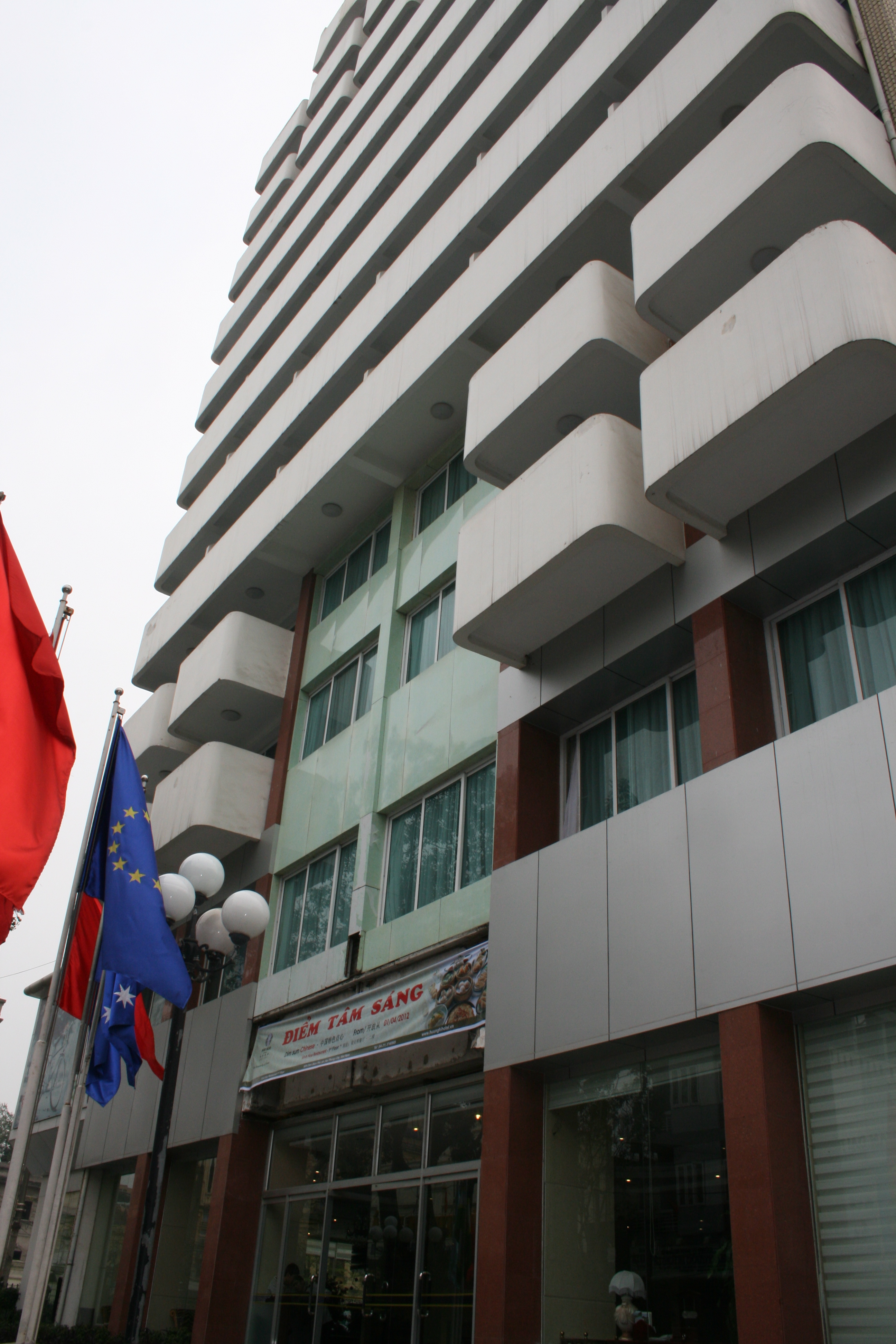 Elfgeschossiges Hotelgebäude in zentraler Lage. 162 schön ausgestattete Zimmer, manche etwas zu teuer. Tennisplatz, Swimmingpool, Fitnesscenter und Restaurant mit vietnamesischen und internationalen Gerichten.