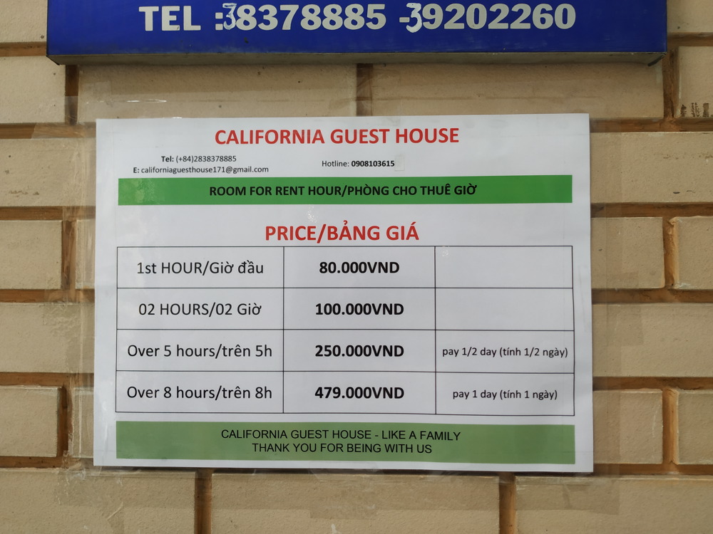 .... das wollte ich immer schon mal schreiben, aber leider ist es mein Abschied von diesem Haus: Denn ein neues Schild neben dem Eingang verkündet nun, dass die Zimmer hier jetzt stundenweise zu mieten sind – wahrlich kein gutes Zeichen. In die nächste Auflage wird das California daher nicht mehr schaffen.
