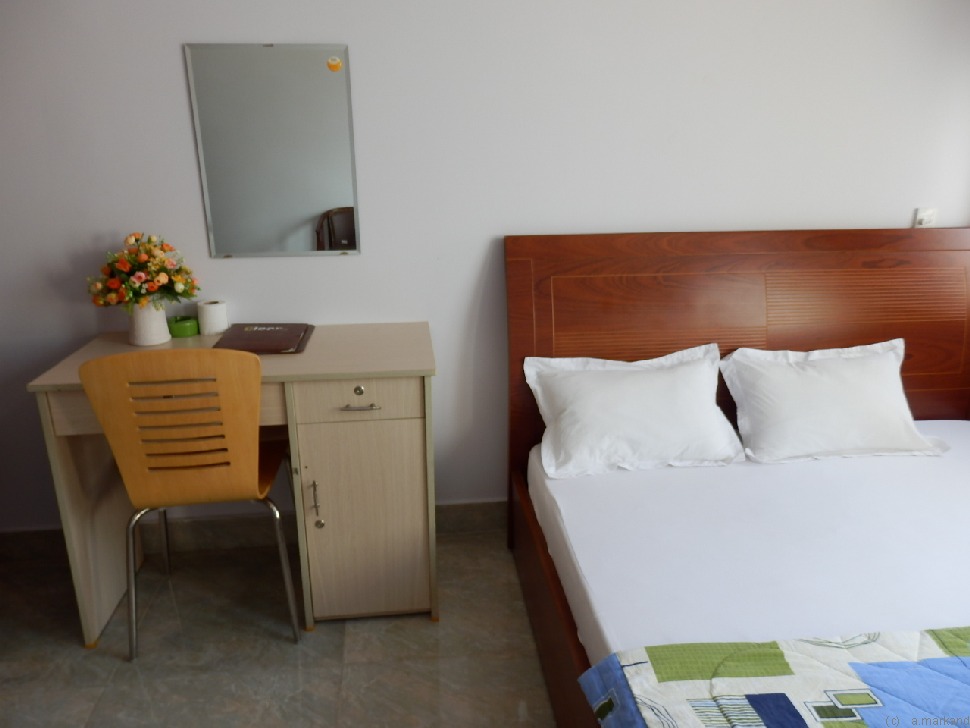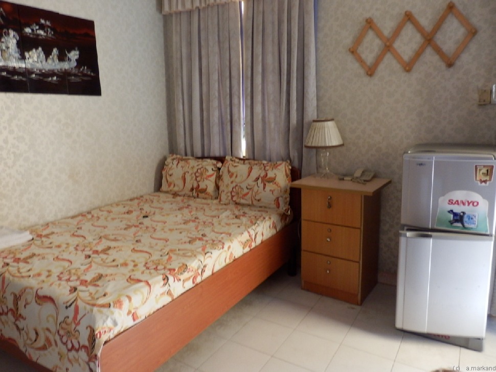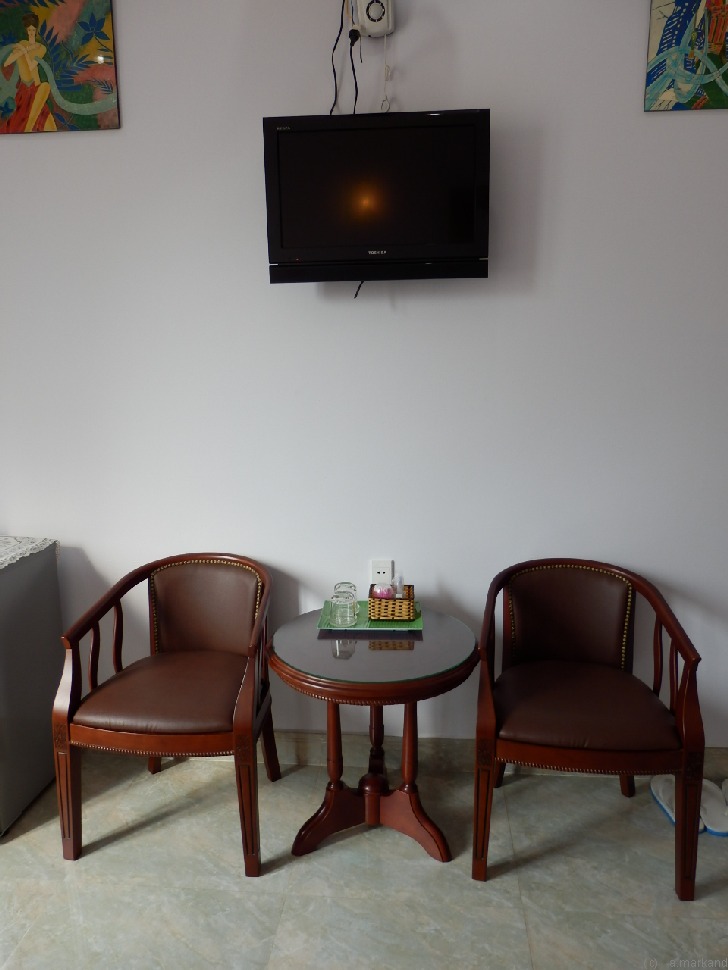 Die Zimmer sind wohnlich und bieten AC, TV und Kühlschrank.