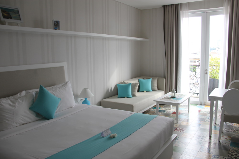 Richtig schön: Wer nicht unbedingt mitten im Touristentrubel wohnen will und auch nicht allzu sehr auf's Budget achten muss, sollte dieses Boutique-Hotel in die engere Wahl nehmen. Freundliche, helle Zimmer, tip-top gepflegt, lustig bunt gekachelte Badezimmer, schöne Aussichten vom Balkon ... hier möchte man länger bleiben.