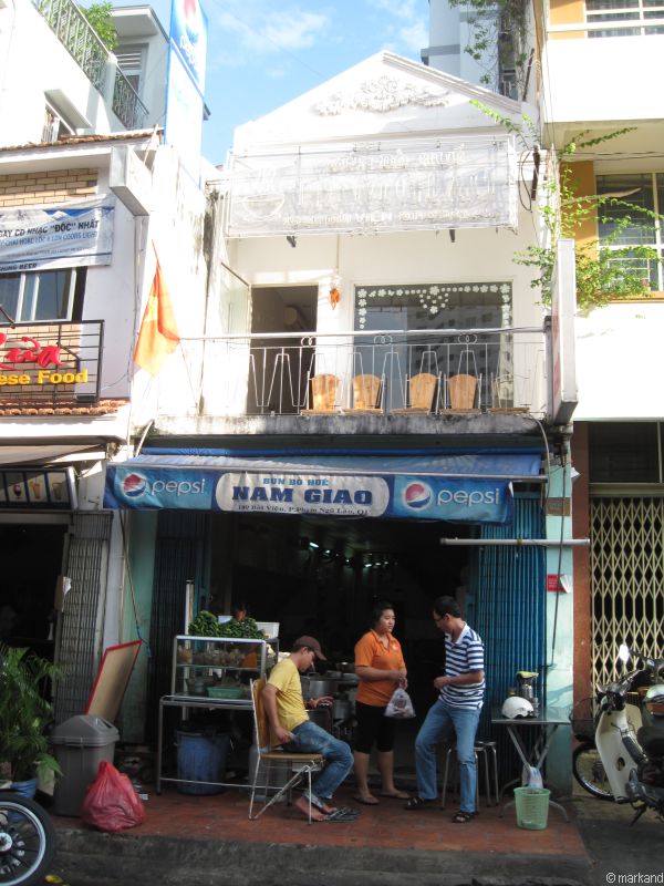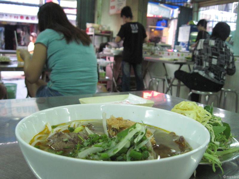 Die beste Bun Bo Hue weit und breit! Das leckere Schweinefleich-Nudel-Gericht mit verschiedenen Fleisch- und Wursteinlagen ist hier zudem preiswert: Eine Schale Bun Bo, dazu ein vietnamesicher Eistee Tra Da: 42 000 Dong.