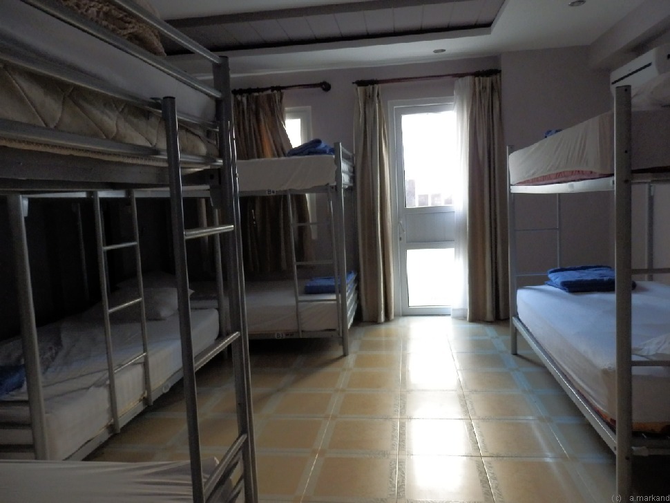 Die einfachen doppelstöckigen Betten bieten je Raum 4 bis zu 10 Personen Platz. Die Ausstattung ist metallisch klar und wenig ansprechend - doch das Haus bekommt die besten Kritiken in Onlineportalen.