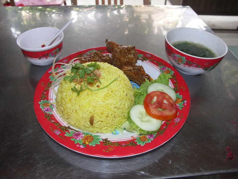 Leckere, einfache Reis-mit-Huhn-Teller im chinesischen Hai Nan Stil.