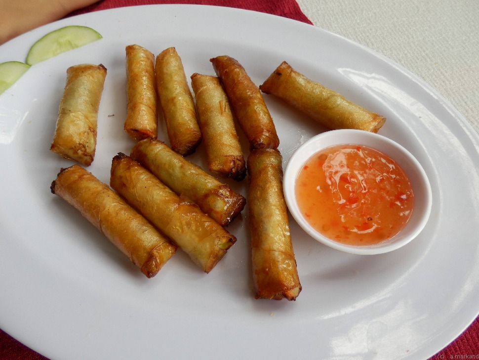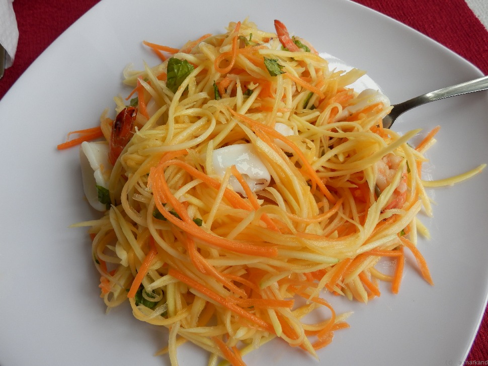 Recht lecker ist der Papaya Salat und Kinder schwören auf Pommes und frittierte Hühnchenteile à la Chicken Mc Nuggets.