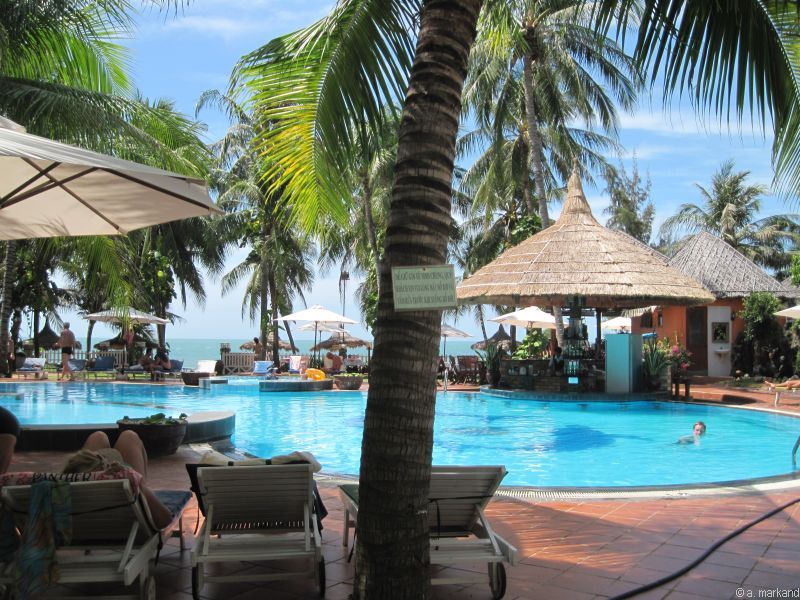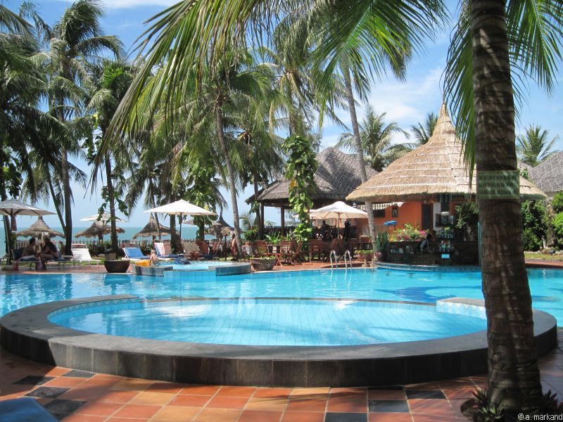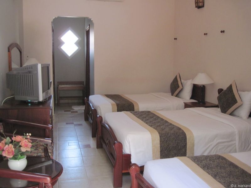 Gut ausgestattete Zimmer in Bungalows und im Haupthaus. Letztere sind teurer und besser ausgestattet.