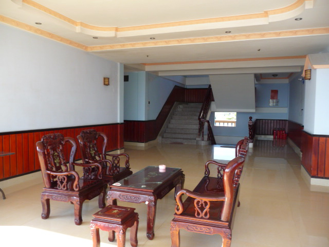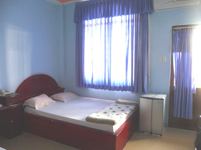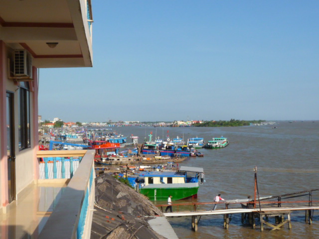 Knapp anderthalb Kilometer außerhalb des Zentrums am Mekong gelegenes Hotel. Luftig gehaltene Etagen mit Balkonen und Aussicht. Die Zimmer sind in dem allseits beliebten blau gestrichen. In der Gartenanlage befindet sich ein Pool, vielleicht ist dieser zeitweise auch mit Wasser gefüllt und zum schwimmen geeignet. Direkt am Fluss liegt das halboffene Hotelrestaurant: Vietnamesisch, europäisch und koreanisch. Die Aussicht auf den Fluss ist es auf jeden Fall wert.