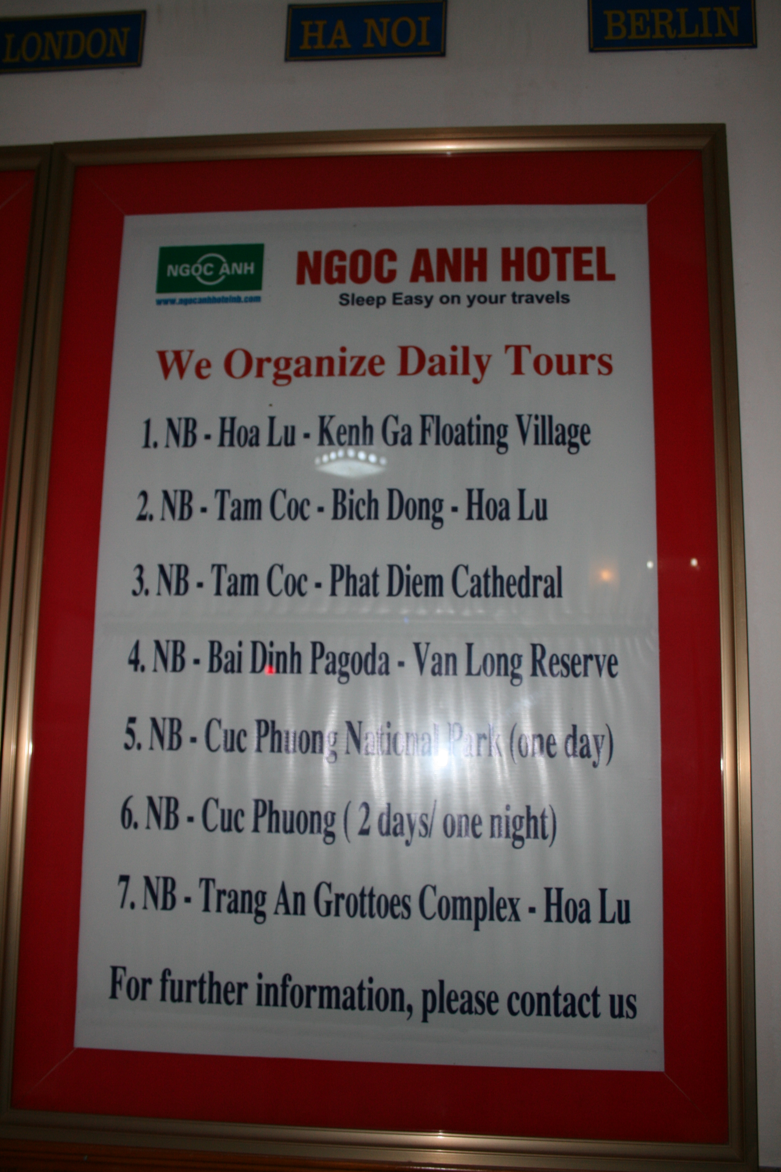 Open Tour Bus nach Hue und Saigon und günstige Tagesausflüge (Tam Coc-Höhle, Bai Dinh Pagode, Trang An, Thai Vi Tempel, Mua Groti-Höhle und weitere) buchbar. Besonders ist der kostenfreie Abholservice innerhalb der Stadt bei der Anreise.