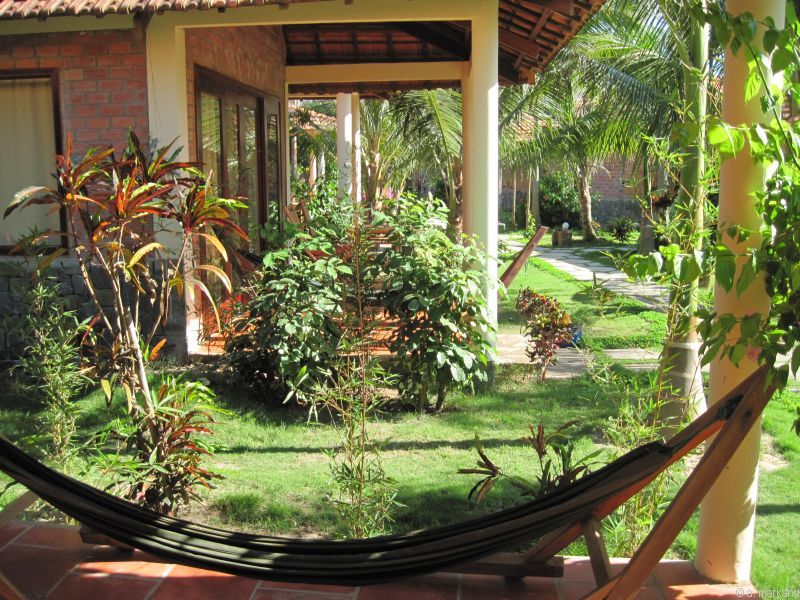 Sehr gepflegter Garten, mit viel Fantasie angelegt und abwechslungsreicher Blumenvielfalt. Die Bungalows sind schlicht und sehr schön eingerichtet, der Safe ist "unglaublich", das Badezimmer halb im Freien, man duscht zwischen Pflanzen, ein super Erlebnis. Auf jeder Terasse gibt es eine Hängematte. Die Liegen am Strand sind etwas verwahrlost, es gibt dort viele Palmen und es ist sehr schattig. Das Frühstück ist á la carte, entweder zwei Getränke und ein Gericht oder zwei Gerichte und ein Getränk, die Gerichte sind ausreichend und schmecken gut. Es hat uns sehr gefallen und der Aufenthalt war sehr angenehm und entspannt