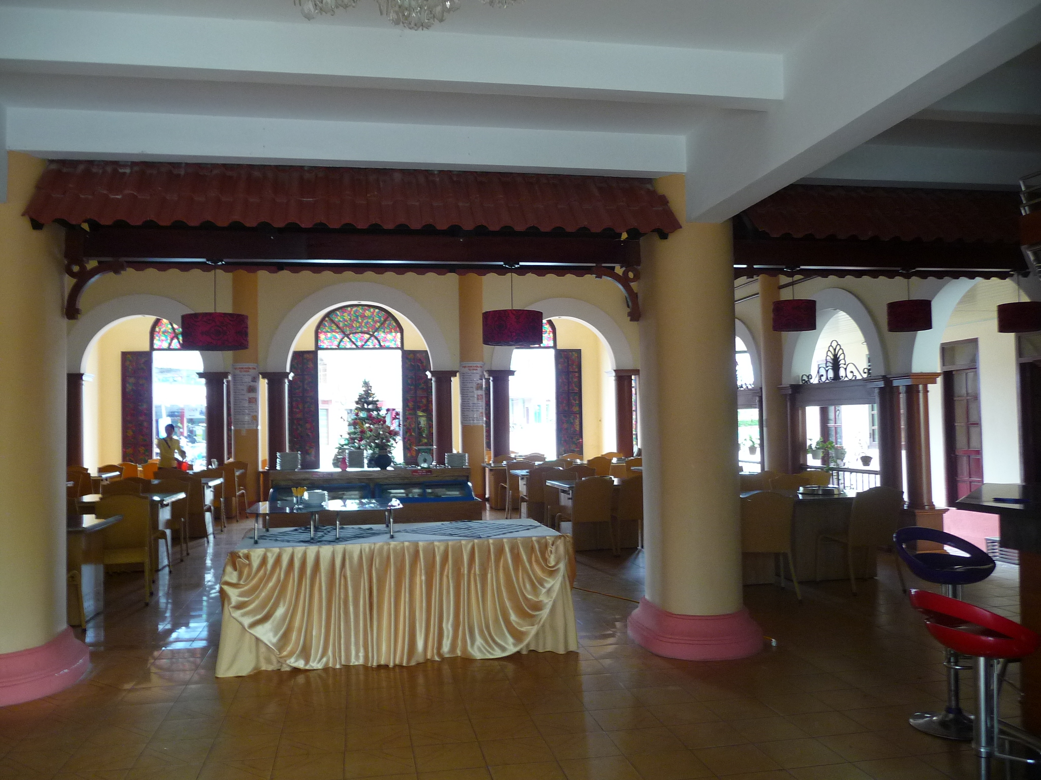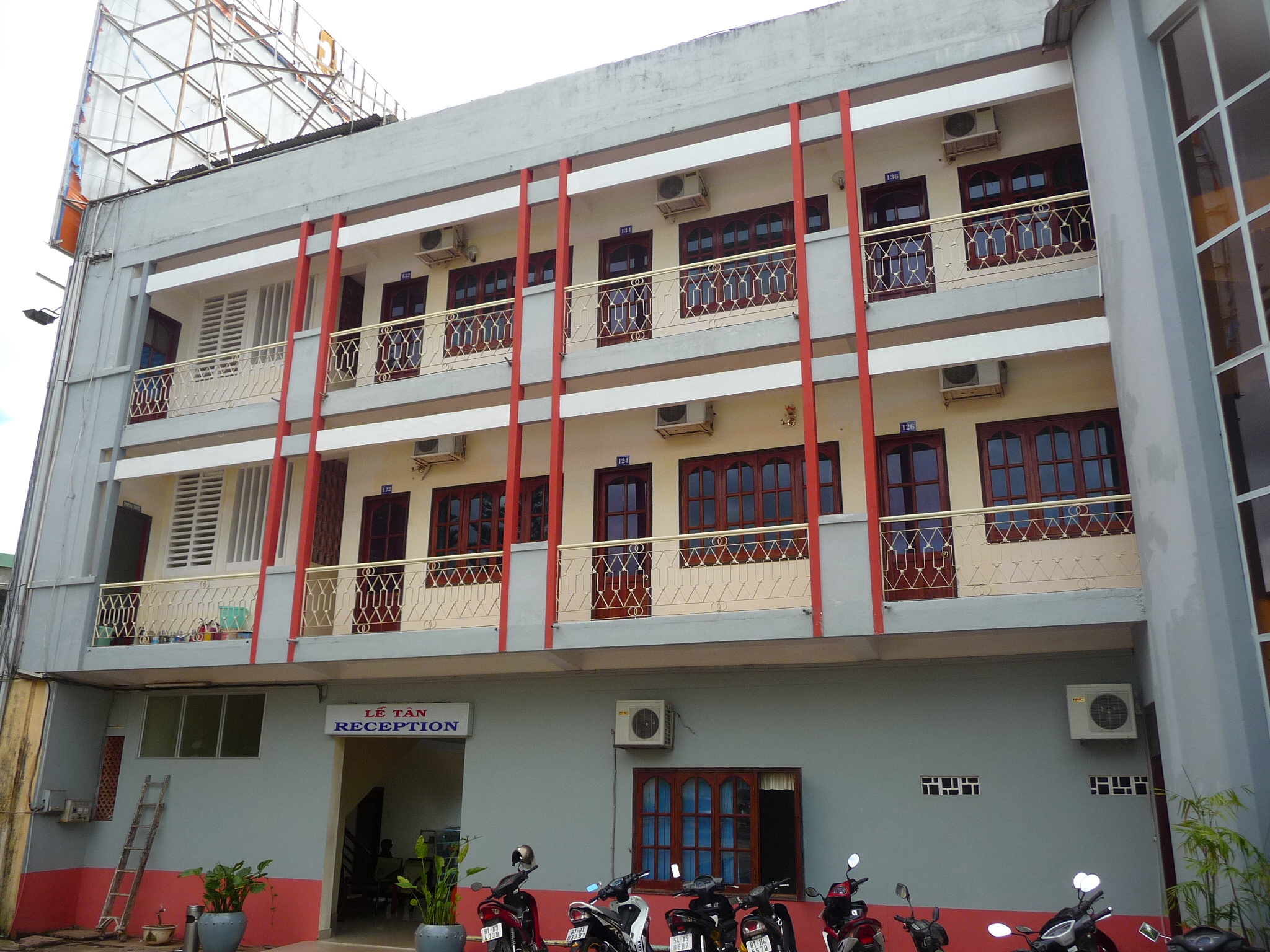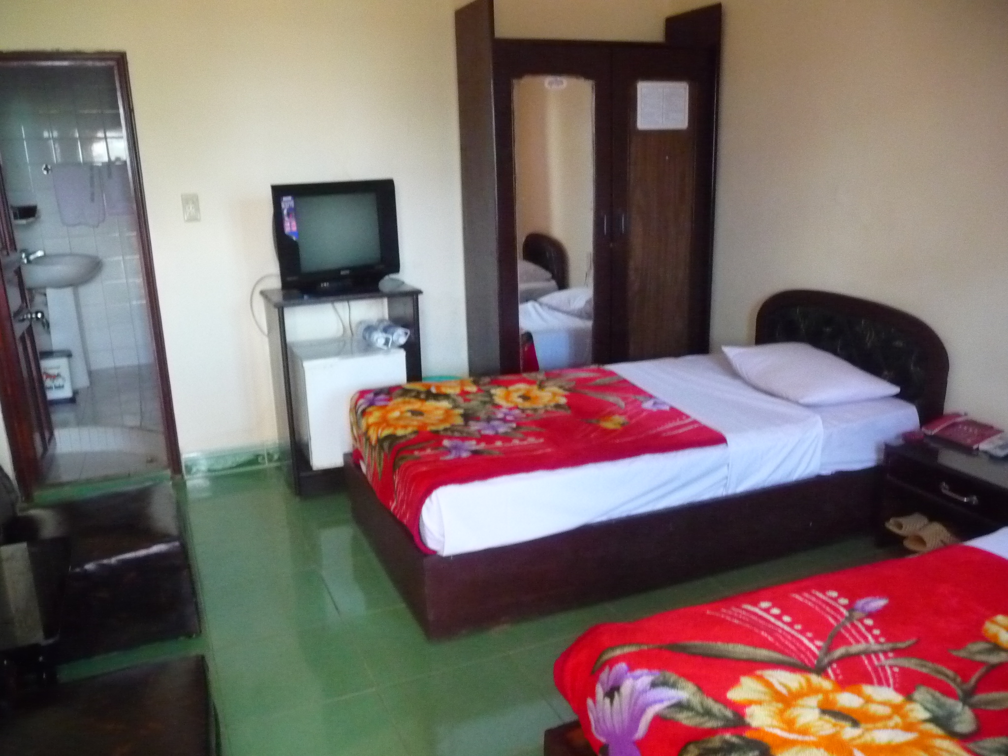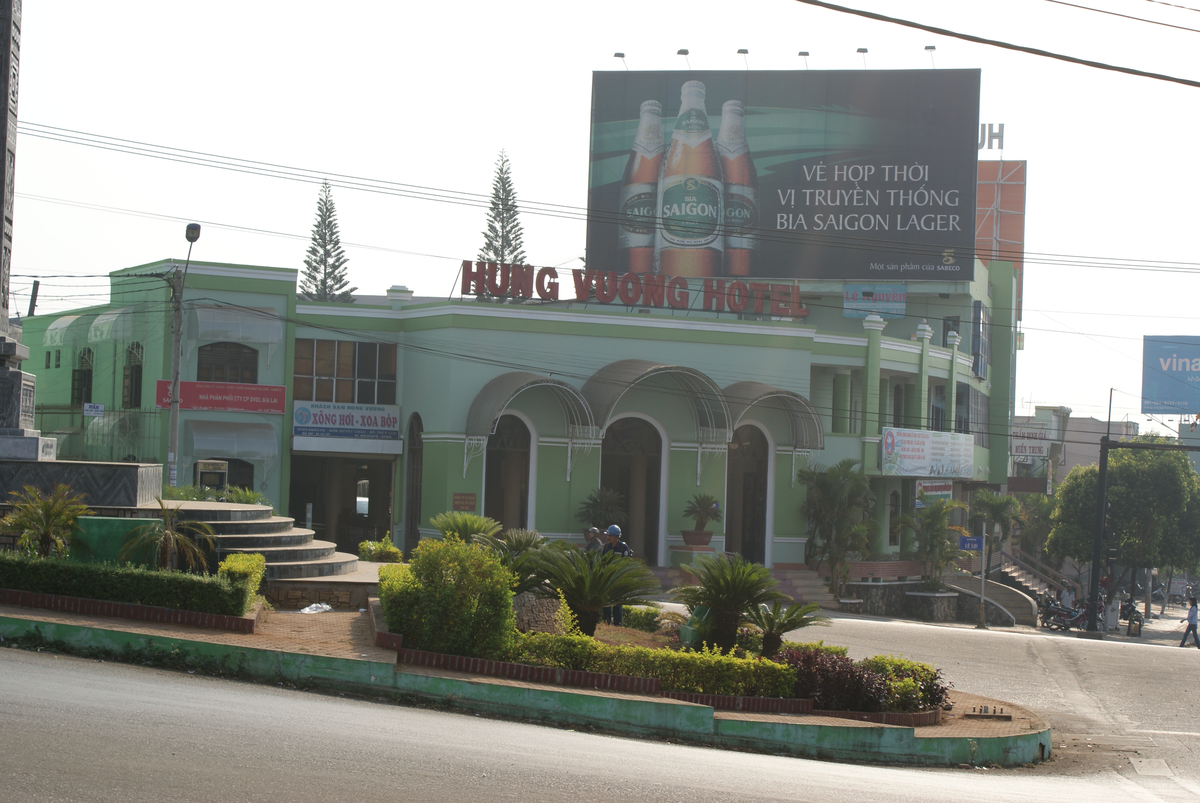 Großes Hotel mit etwas verwohnten Zimmern im Zentrum. Im Erdgeschoß befindet sich ein Aufenthaltsraum mit großen halbrunden Fenstern mit Blick auf die belebte Straße. Daneben kann man im Büro des Gialai Tourist Centers Ausflüge in die Umgebung buchen.