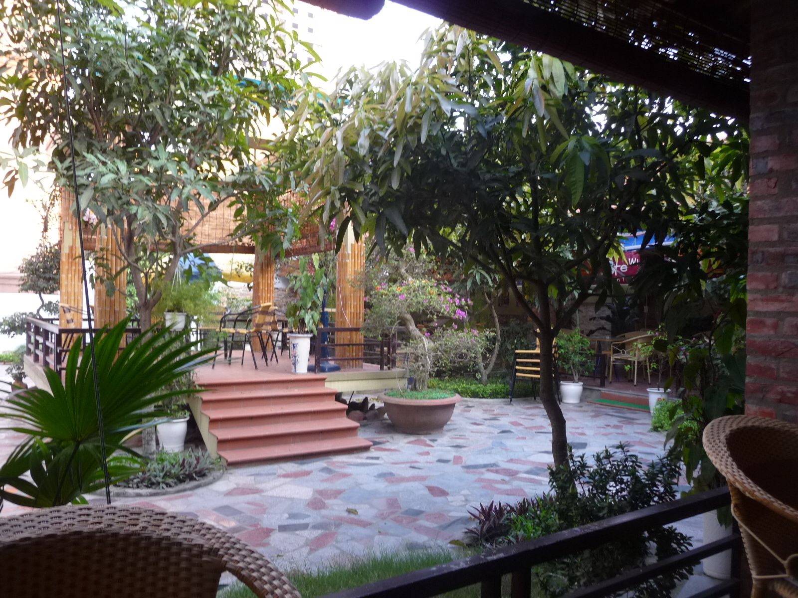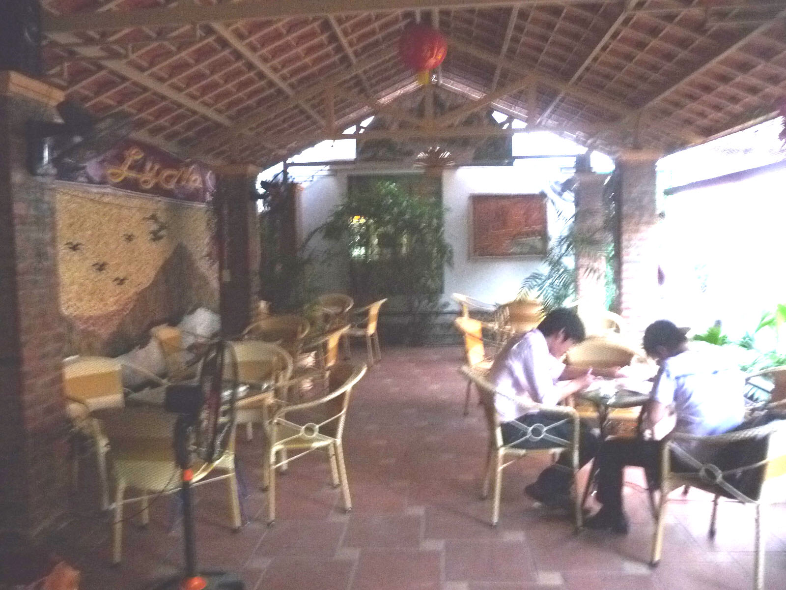Herrlich entspannt sitzen abseits der Straße: im Innenhof, teils überdacht kann man einen Tee oder Kaffee genießen. Oder am eigenen Laptop das Wifi-Angebot nutzen.