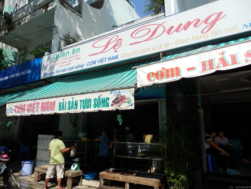 Das einfache Restaurant leigt an der Hauptstraße und wird abends, vor allem am Wochenende, stark frequentiert. Westliche Esser müssen etwas Mut mitbringen, denn die Bedienung spricht selten englisch und nicht alles, was in der Frischfisch-Meerestierauslage zur Auswahl bereit liegt, sieht lecker aus. Sehr typisch vietnamesisch ohne einen Hauch westlichem Einfluss.
