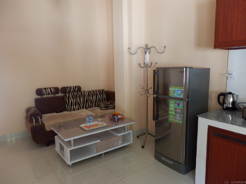 Ein Zimmern hat sogar eine Küche und eine kleine Wohnzimmerecke.